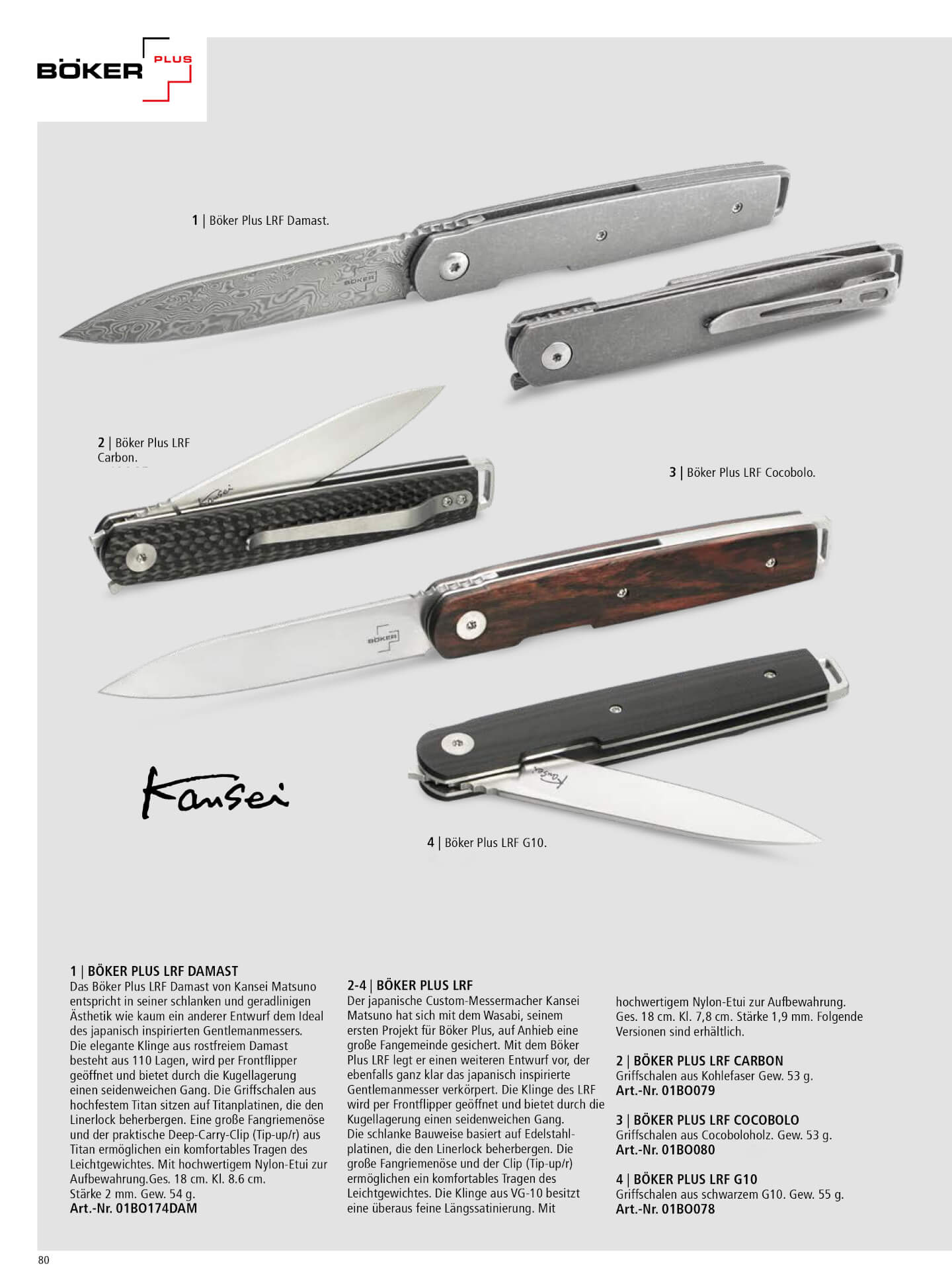 Couteaux conçus par le coutelier japonais Kansei Matsuno. Il présente un design qui intègre également clairement le couteau de chevalier d'inspiration japonaise. La lame LRF est ouverte par un volet avant et offre un engrenage lisse et soyeux grâce aux roulements à billes.