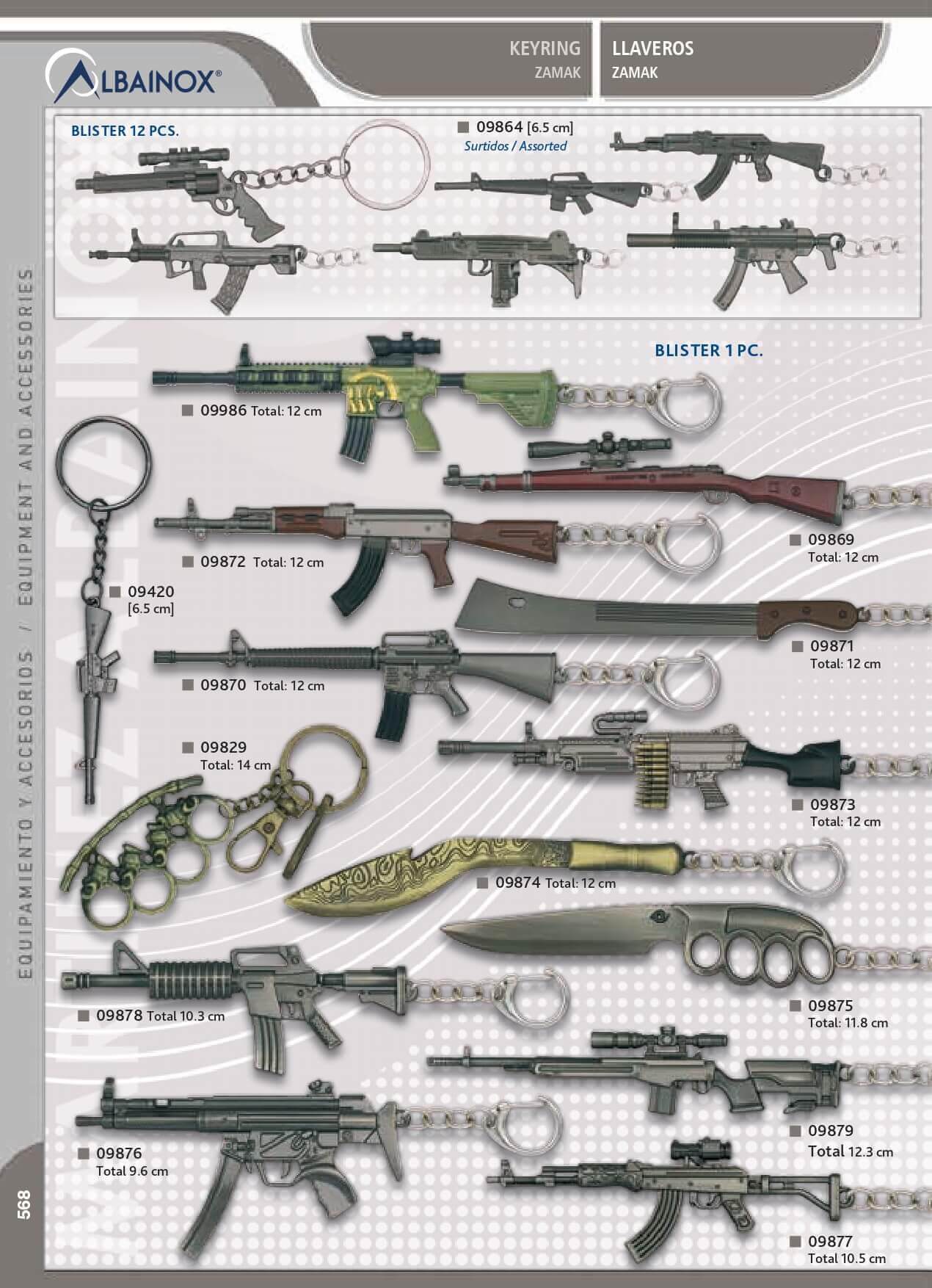 Sortido de chaveiros com armas apresentados em blister de 12 unid...