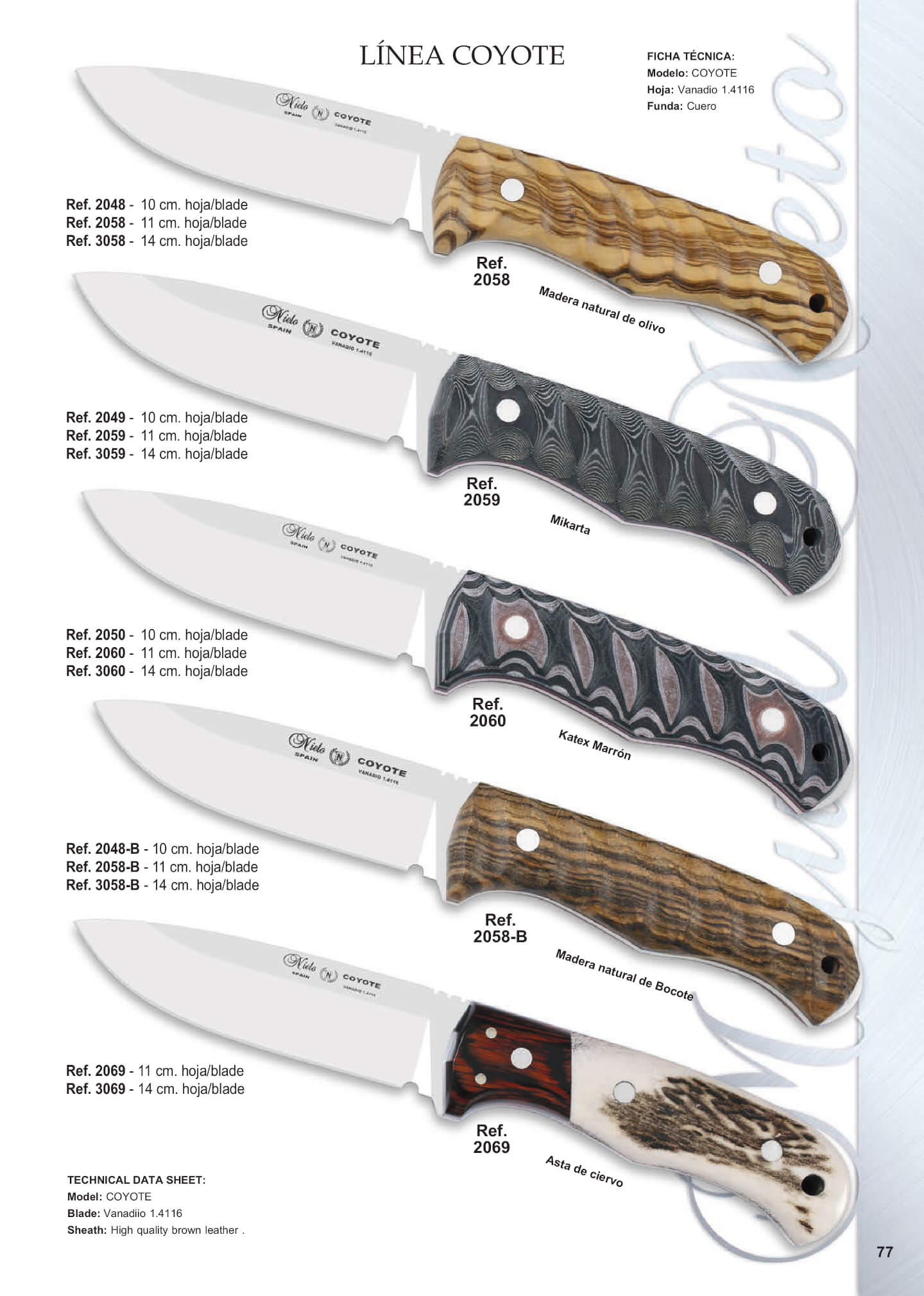 Mango: madera natural de olivo. Longitud de hoja: 14 cm.
