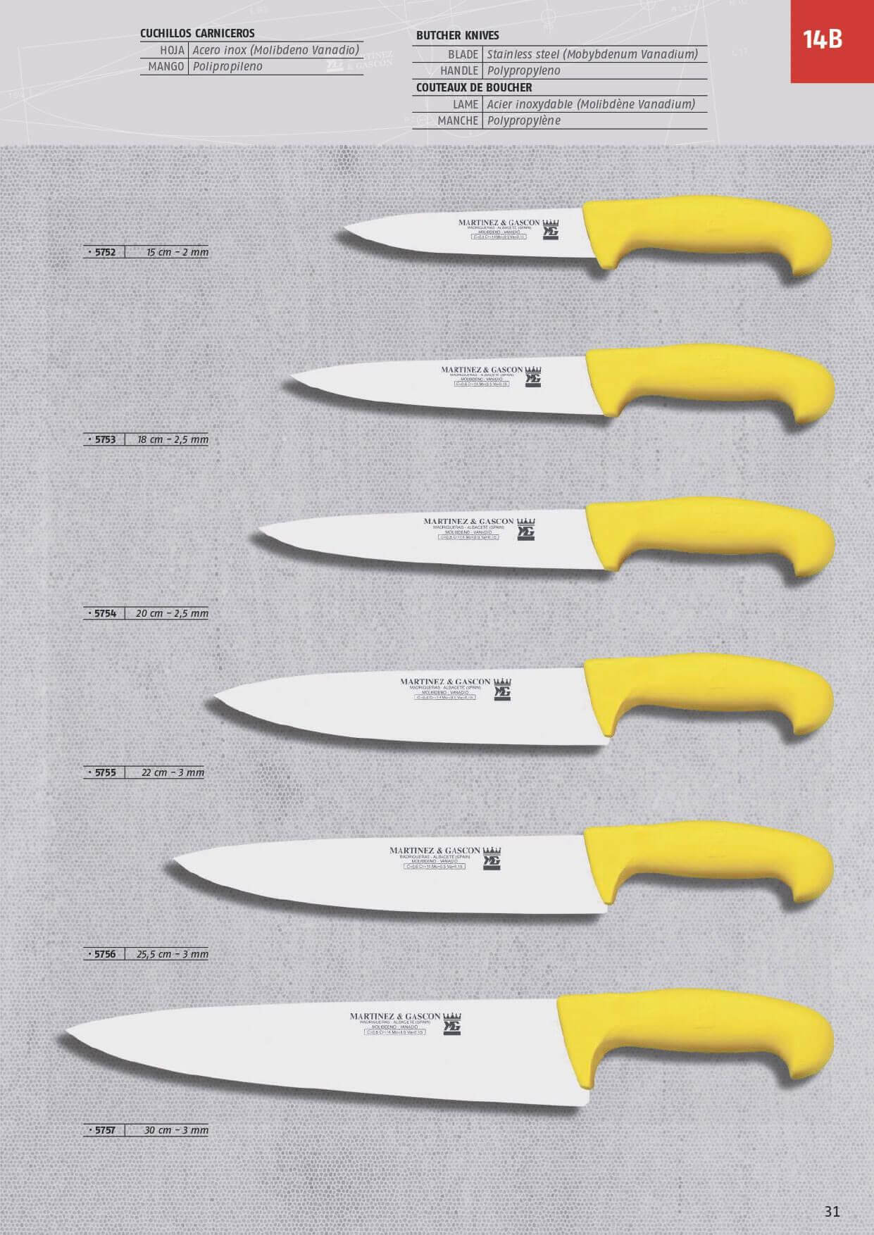 Butcher knife with 30 cm pointed blade and yellow polypropylene h...