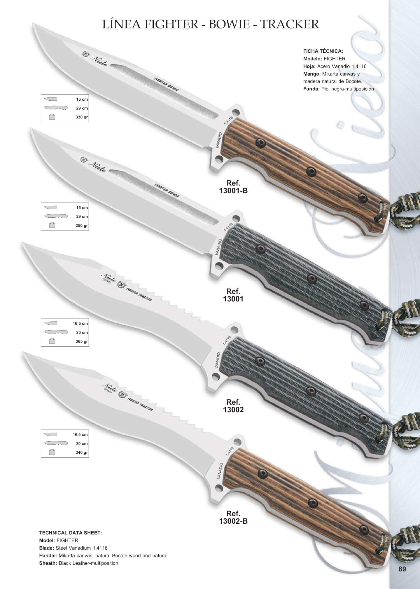 Couteaux tactiques, de la ligne Fighter, avec étui en cuir et en acier Vanadium.
