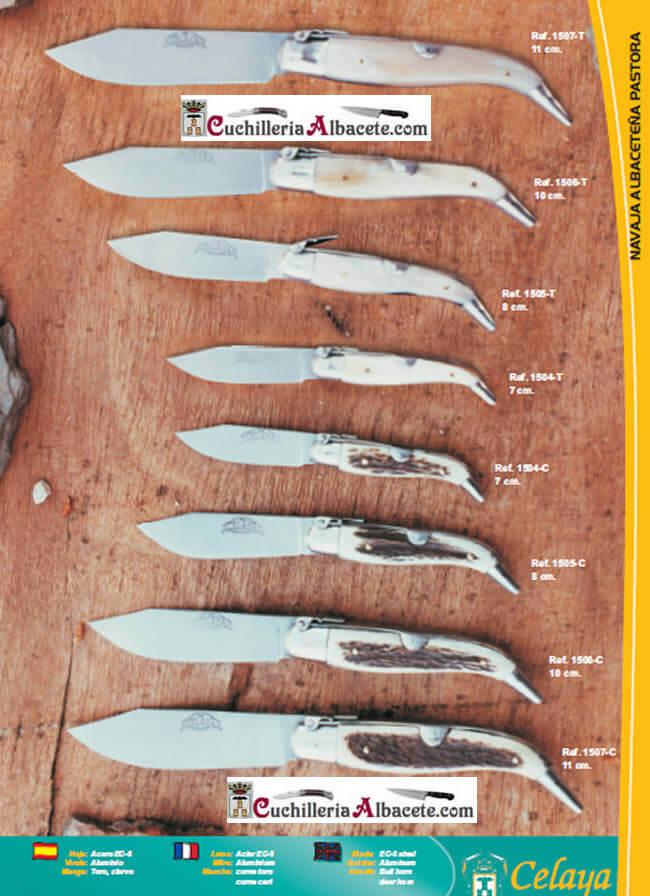 Coltello pieghevole Albacete classic "pastora" con lama in acciaio al carbonio o inox. Manici in corno di toro o corno di cervo. Puntale in alluminio