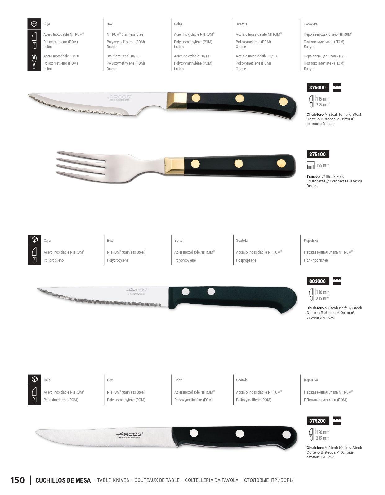 12 Arcos Steakmesser mit schwarzem Kunststoffgriff und glatter Kl...