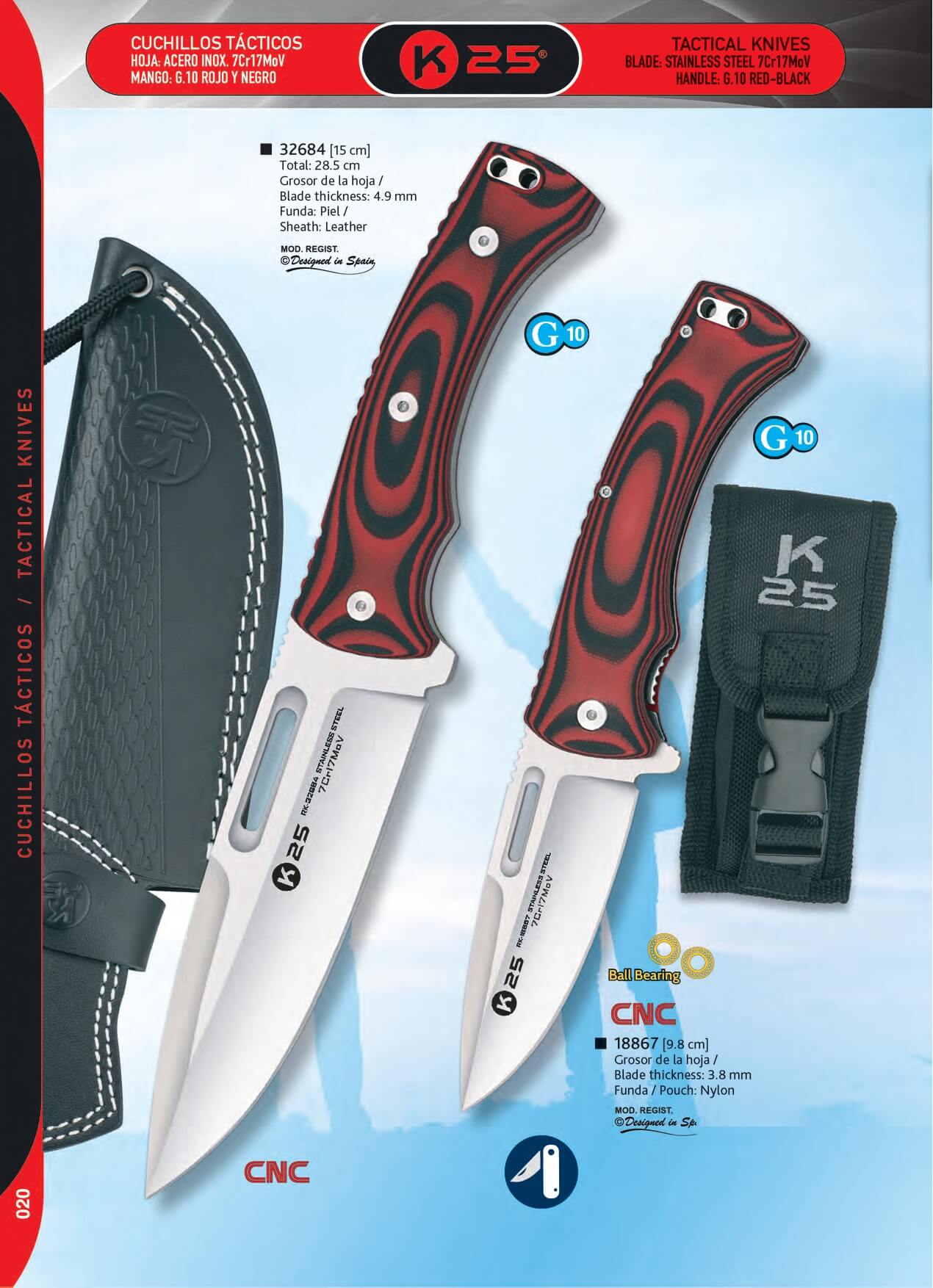 Taktisches K25-Messer mit 15 cm Klinge und rotem und schwarzem G1...