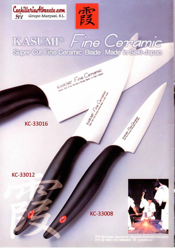 O material de que são feitos de cerâmica facas Kasumi contém uma alta porcentagem de óxido de zircônio. Este zirconia temperado é de aproximadamente 1500°C em um forno especial. O resultado é um material cuja dureza é superado apenas pelo diamante. E a chave é que as partículas de óxido de zircônio que formam a lâmina é extremamente fina e isso permite firmemente interposta entre as partículas de cerâmica, fazendo da estrada um. Homogênea e muito difícil Em detalhe, o maior benefício do uso de óxido de zircônio do fato de que desgasta mais lentamente do que o aço inoxidável, com uma faca afiada que permanece por mais tempo. Outros benefícios são que a lâmina não manchar ou ferrugem ou mancha, sendo um material inerte. As facas de lâmina de cerâmica não deixar um sabor metálico aos alimentos, mais eles são mais fáceis de limpar e não tem que secar completamente cada vez que usar. Além disso, o material cerâmico é muito leve e de higiene.