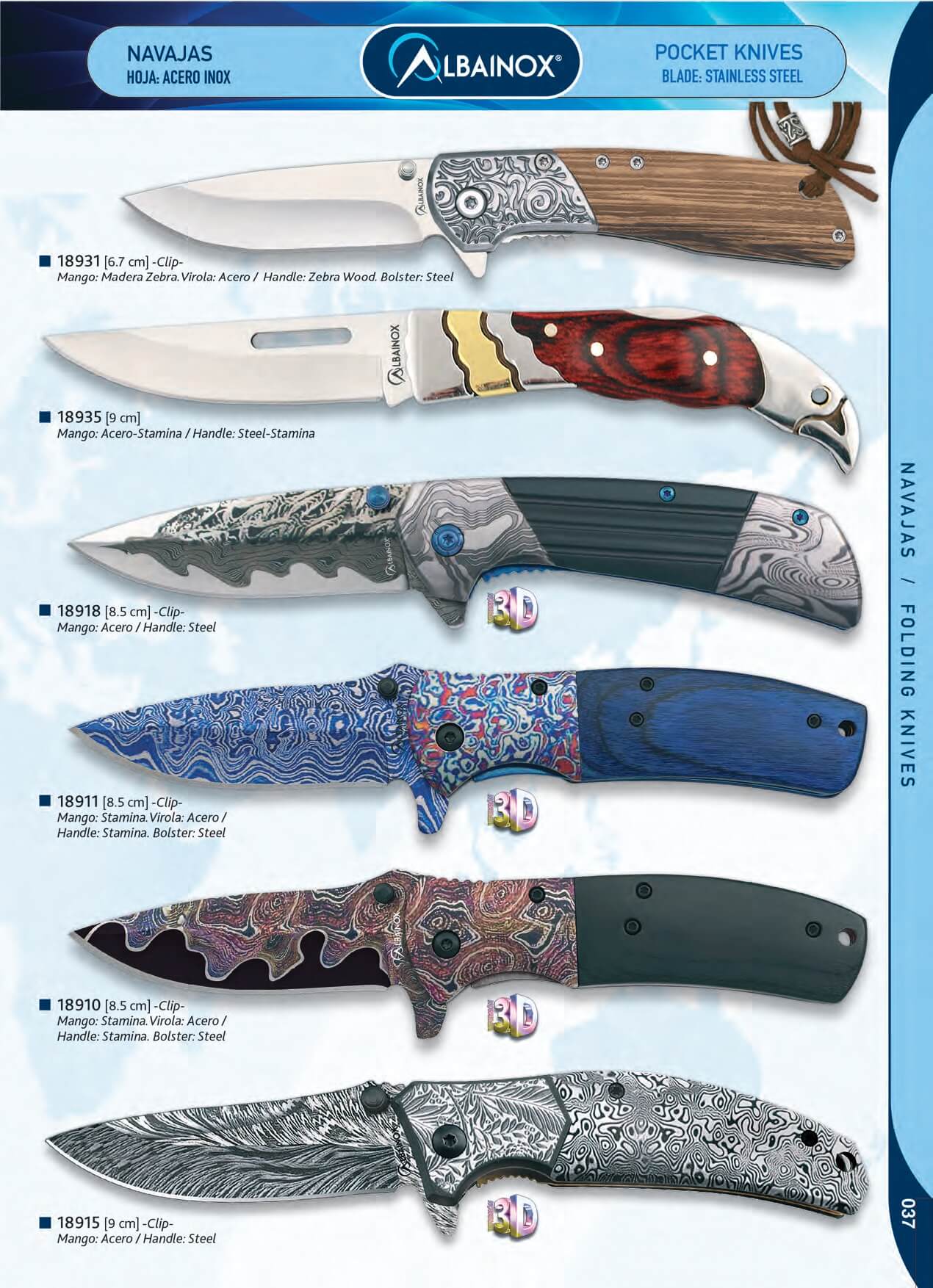 Canivete com cabo de aço decorado e lâmina decorada em 3D