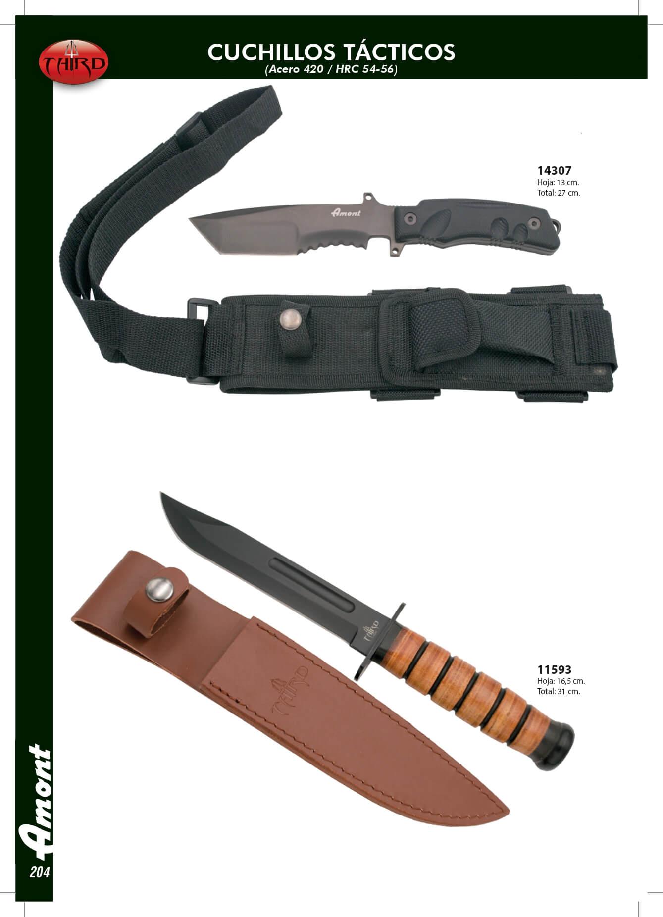 Faca tática. Aço 420. HRC 54-56. 14307 Comprimento da folha: 13 cm. Comprimento total: 27 cm. 11593 Comprimento da lâmina: 16,5 cm. Comprimento total: 31 cm.