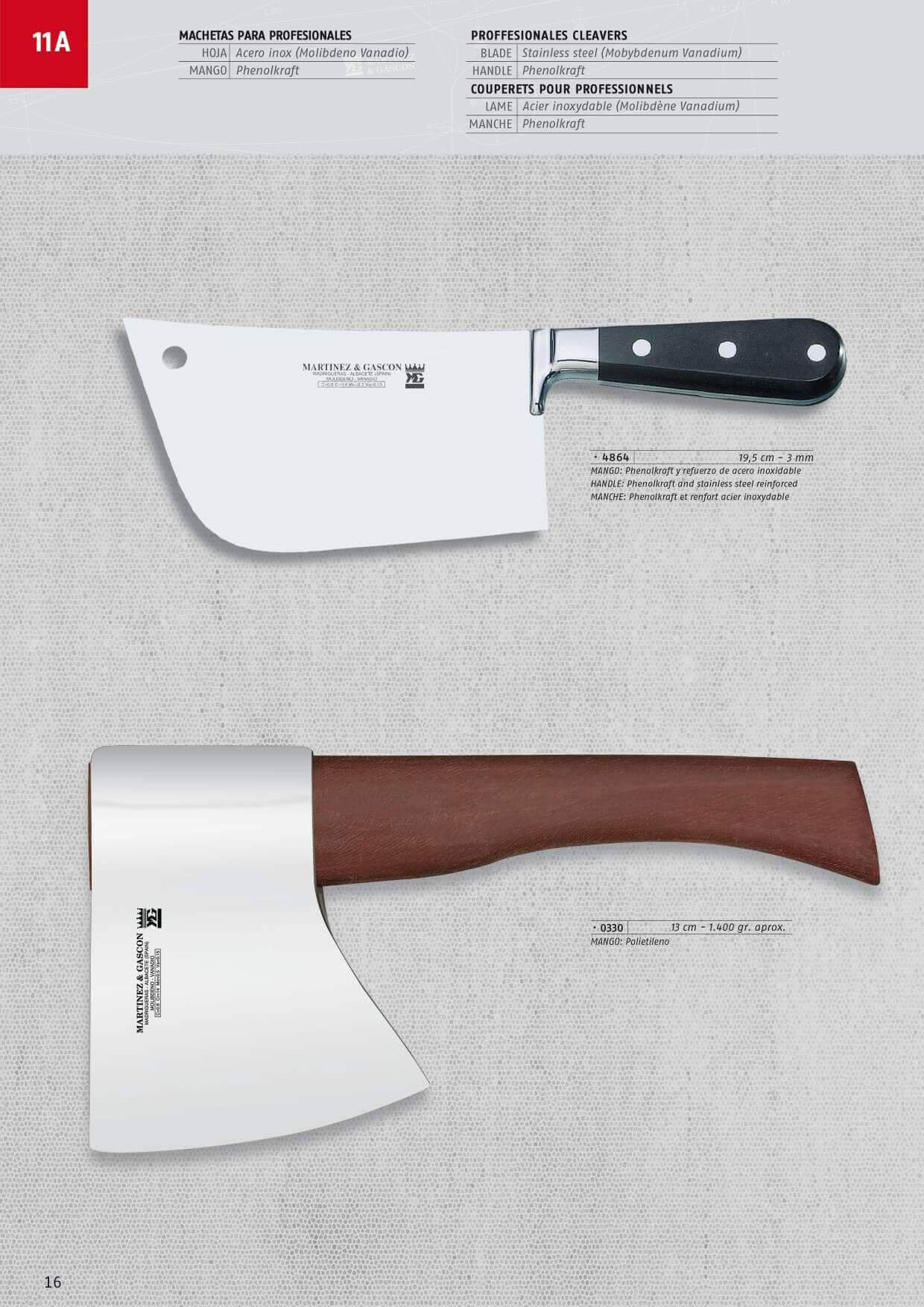 Macheta para profissional. Cabo em fenolkraft e reforço em aço inoxidável. Comprimento da lâmina: 19,5 cm Espessura da lâmina 3 mm.