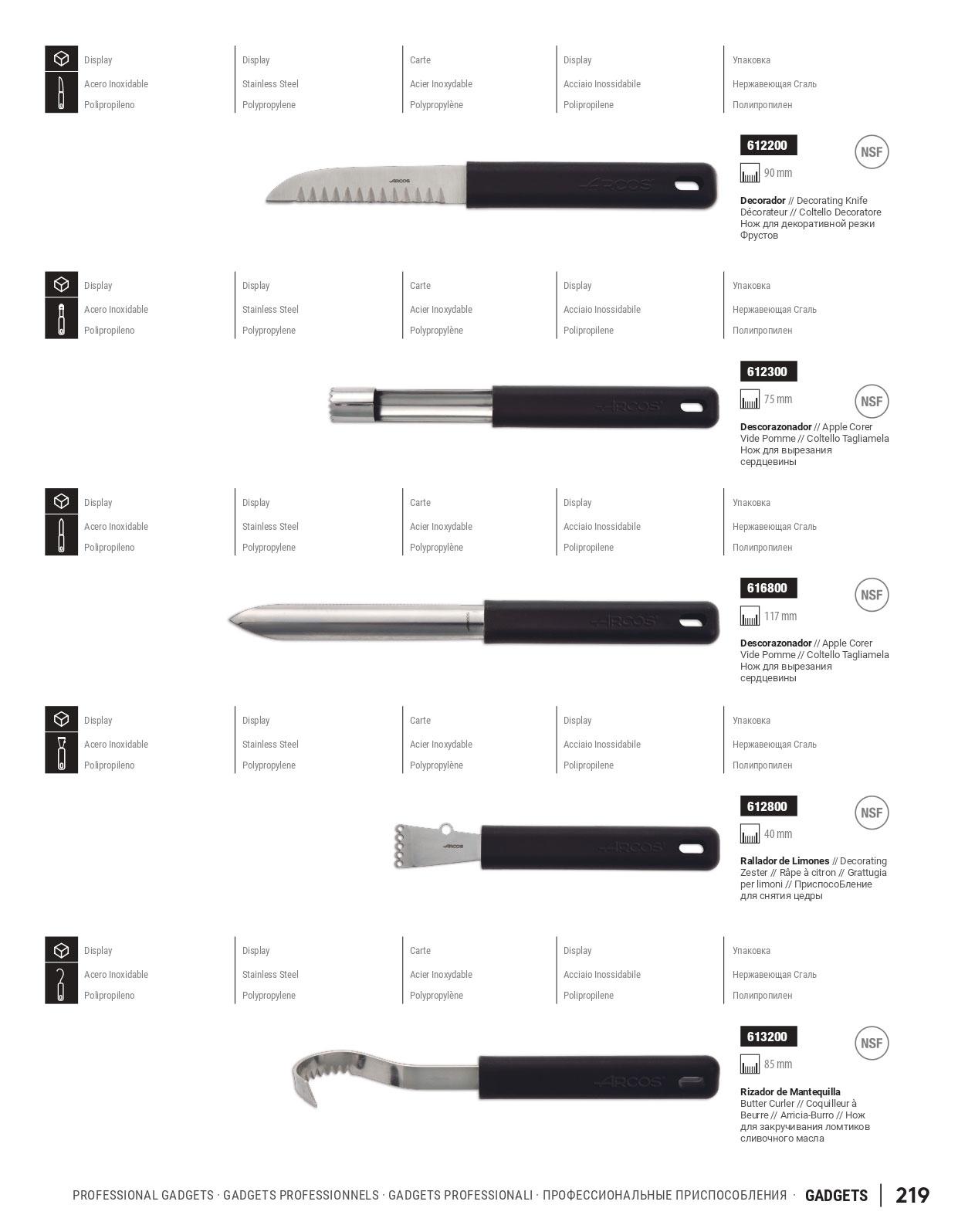 Utensilios de cocina de acero inoxidable con mango de polipropileno.