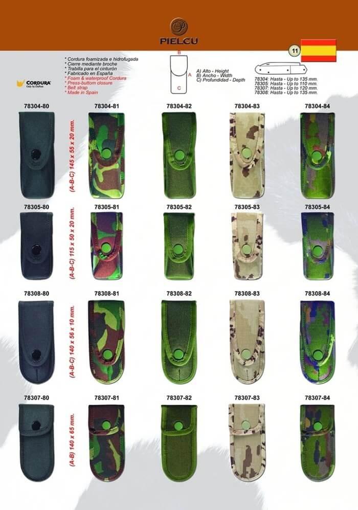 . Fundas de navajas con Cordura foamizada e hidrofugada, cierre mediante broche y trabilla para el cinturón. Fabricadas en España.