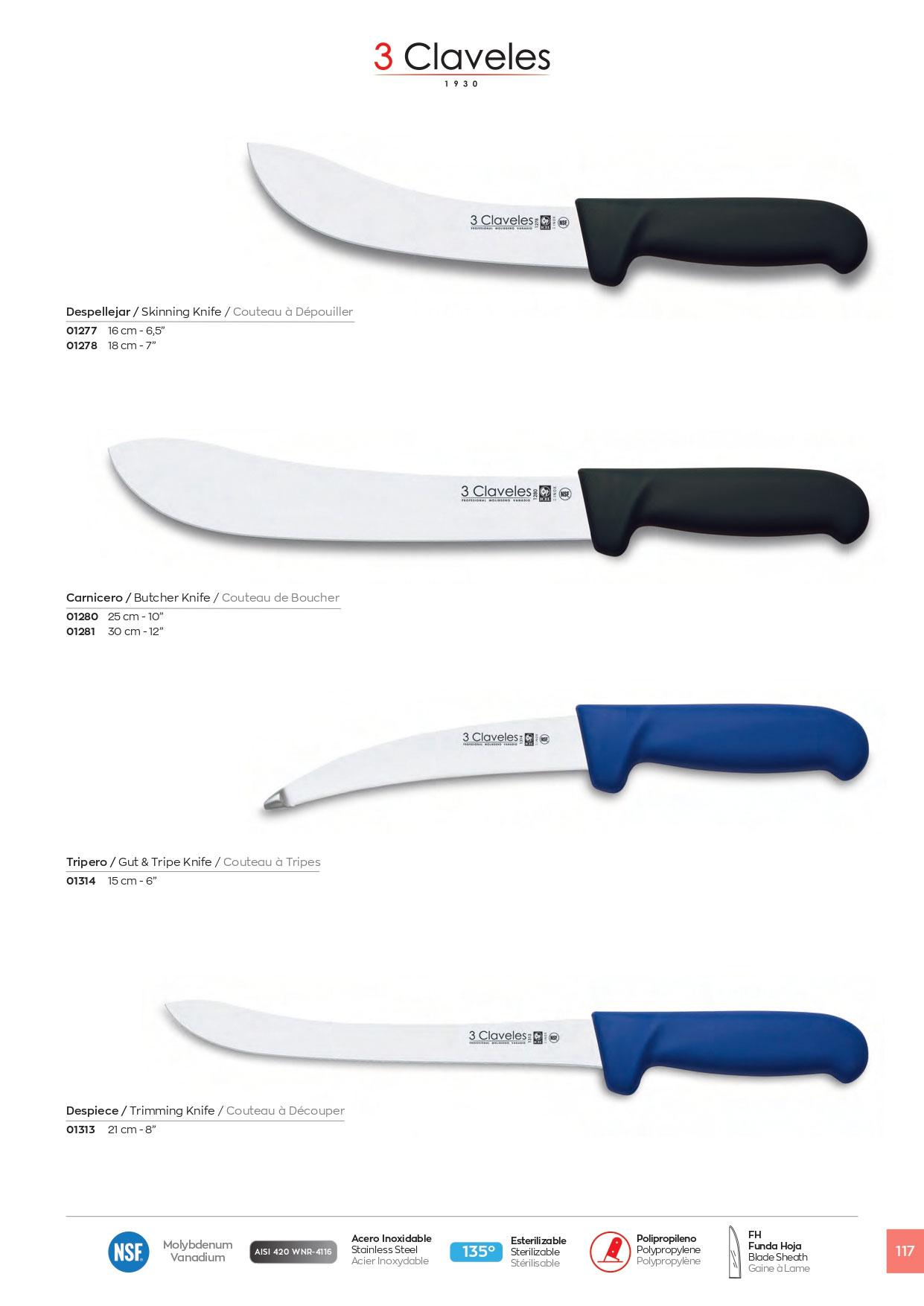 Cuchillos Profesionales de despellejar de Carnicero, tripero y despiece. Acero Inoxidable mango de polipropileno