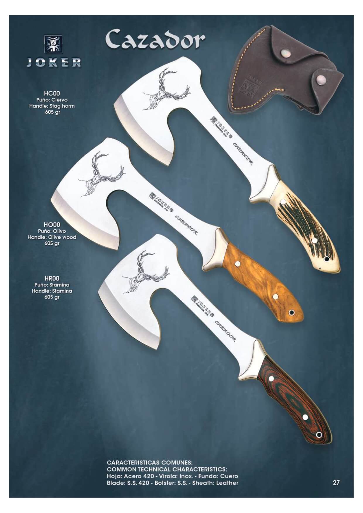 Hoja de acero 420. Virola inox, funda de cuero.