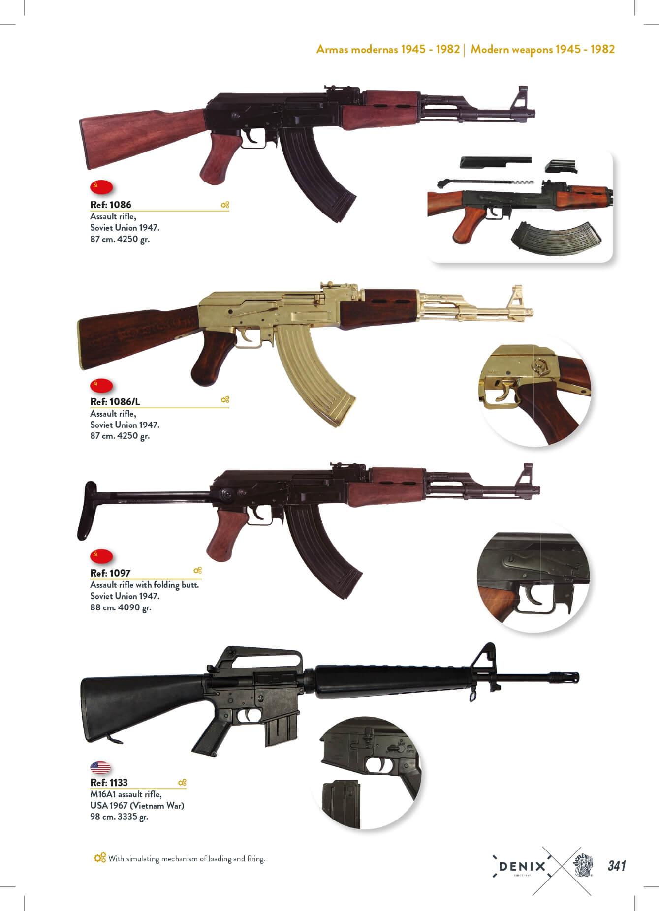 Réplicas de ametralladoras y escopetas con mecanismo de simulación de carga y disparo.