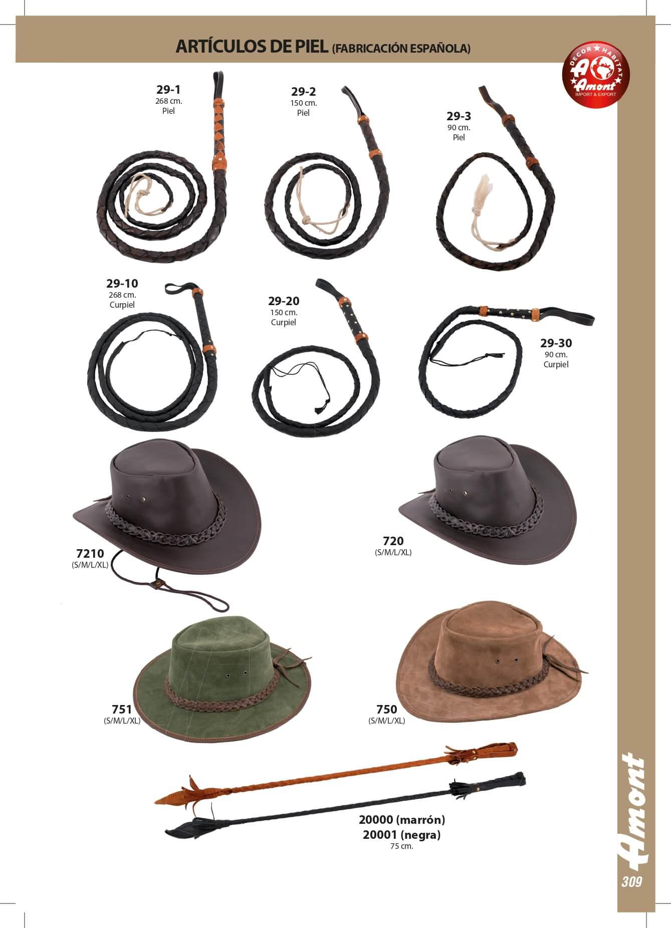 Artículos de piel: cartucheras, látigos, sombreros, zurrones y fustas.