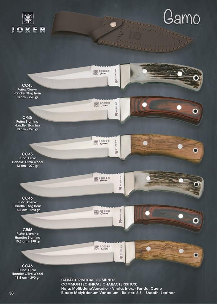 Cuchillos de caza con hoja de acero Molibdeno Vanadio. Virola de acero inoxidable. Funda de cuero.