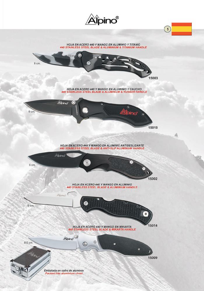 Mangos en G-10, Micarta, Aluminio/Caucho, Aliminio antideslizante y aluminio estampado.