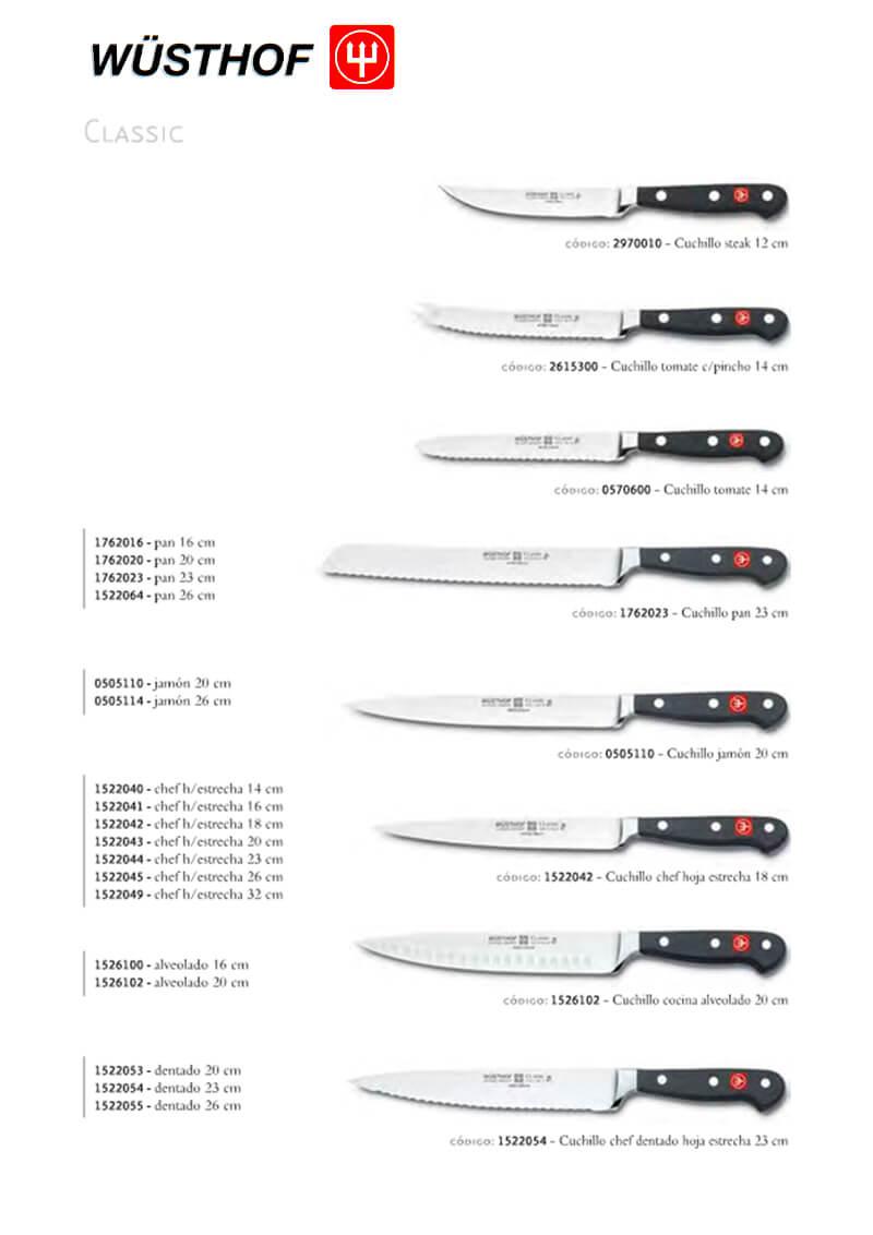 Cuchillos Wüsthof. serie CLASSIC. Cuchillos de diferentes tamaños.