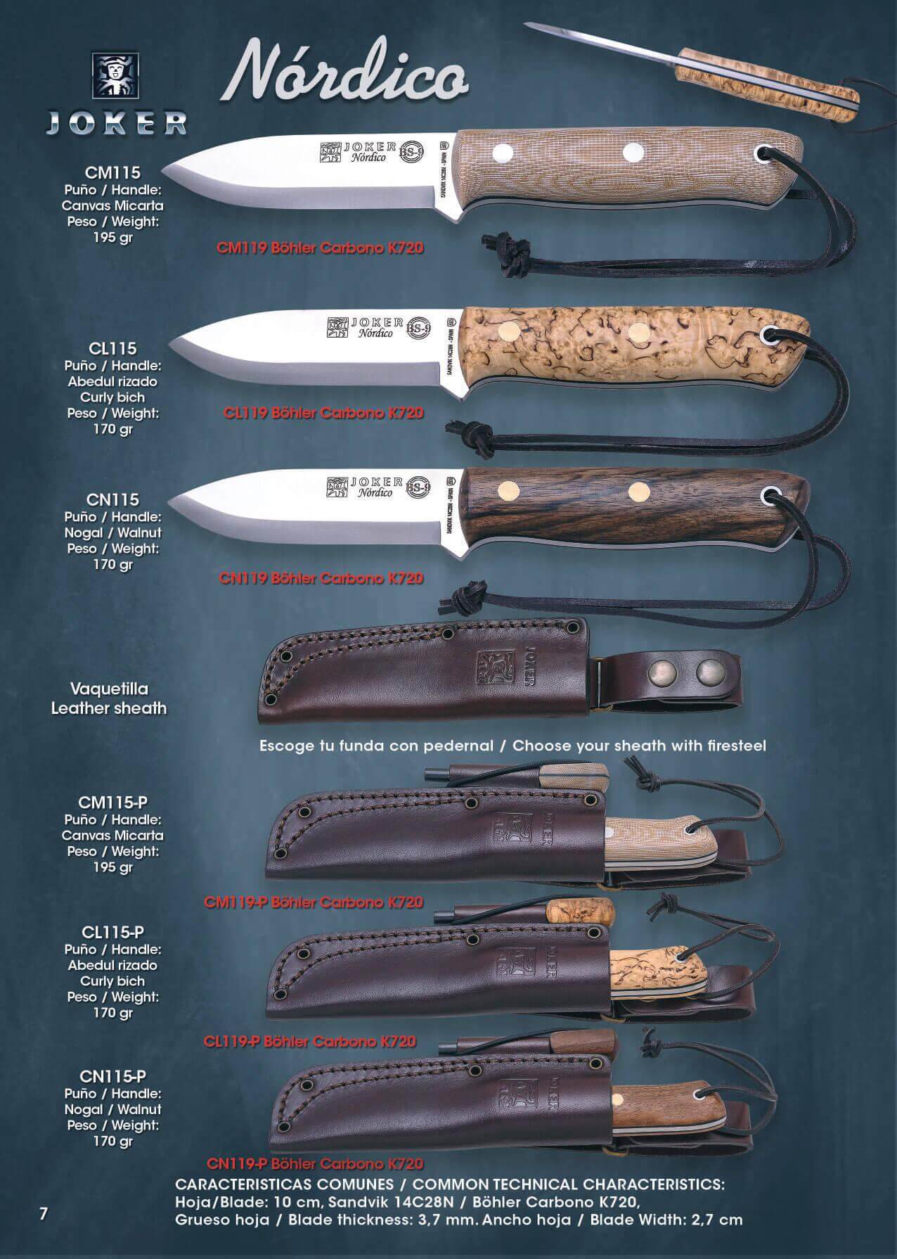 Punho: vidoeiro encaracolado. Folha: 10 cm. Chapa de aço Sandvik 14C28N. Caso: couro. Com pederneira.