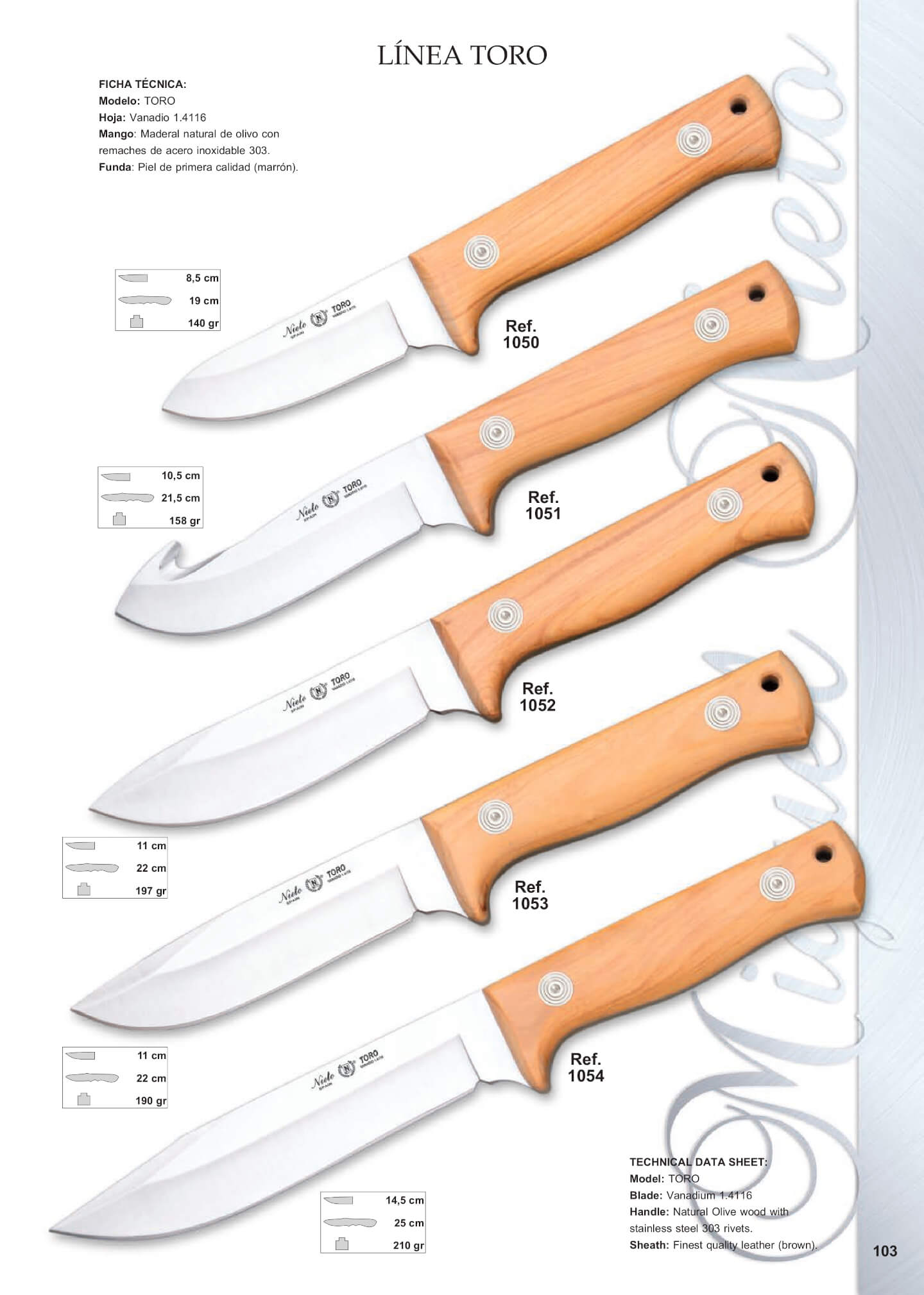 Vanadium 1.4116 steel blade, natural wood handle of ebony black and stainless steel rivets 330. Leather Premium (brown).