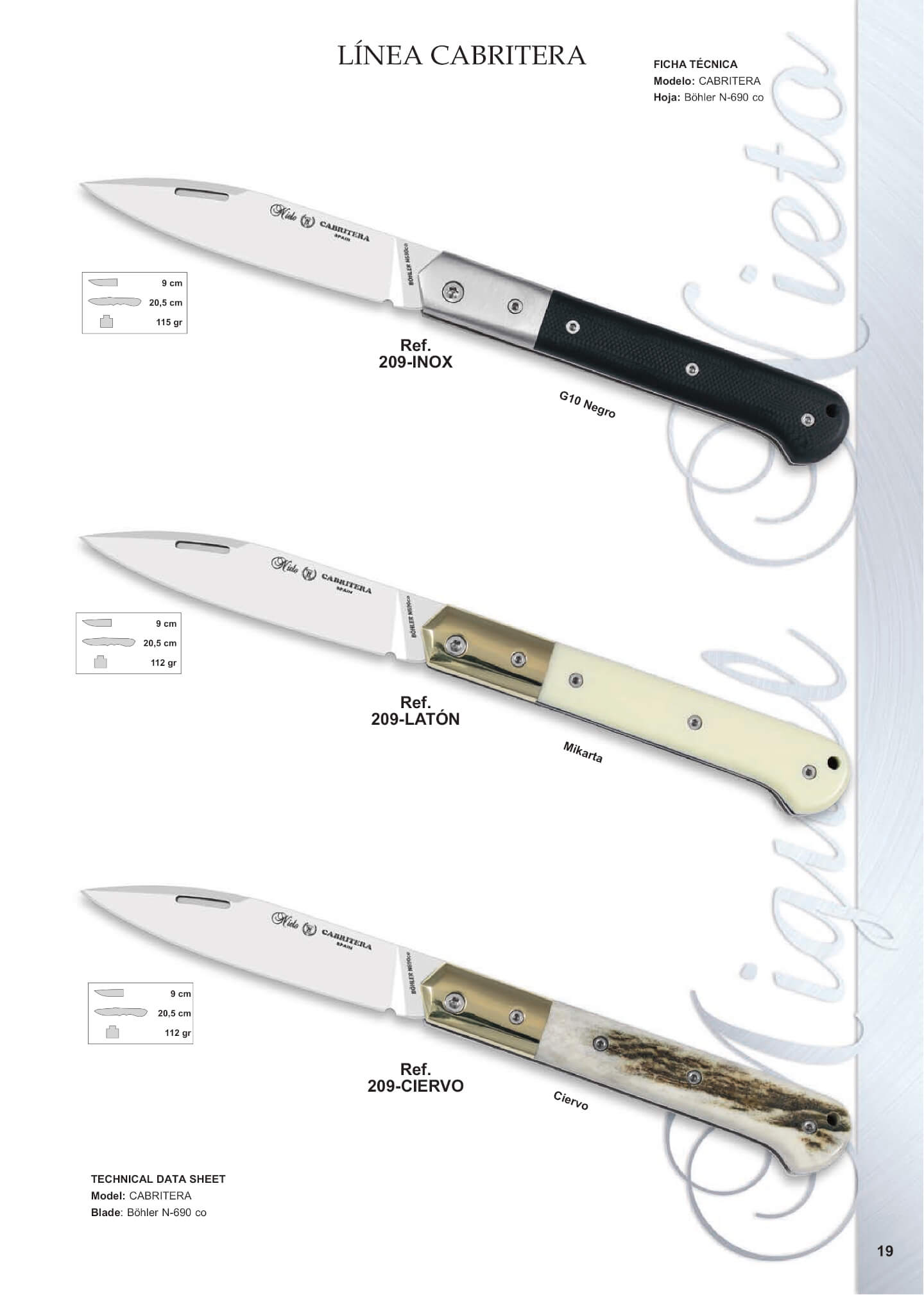 Nieto Cabritera line pocket knives with 9 cm Böhler N690 Co steel blade. With hole for safety cord.
