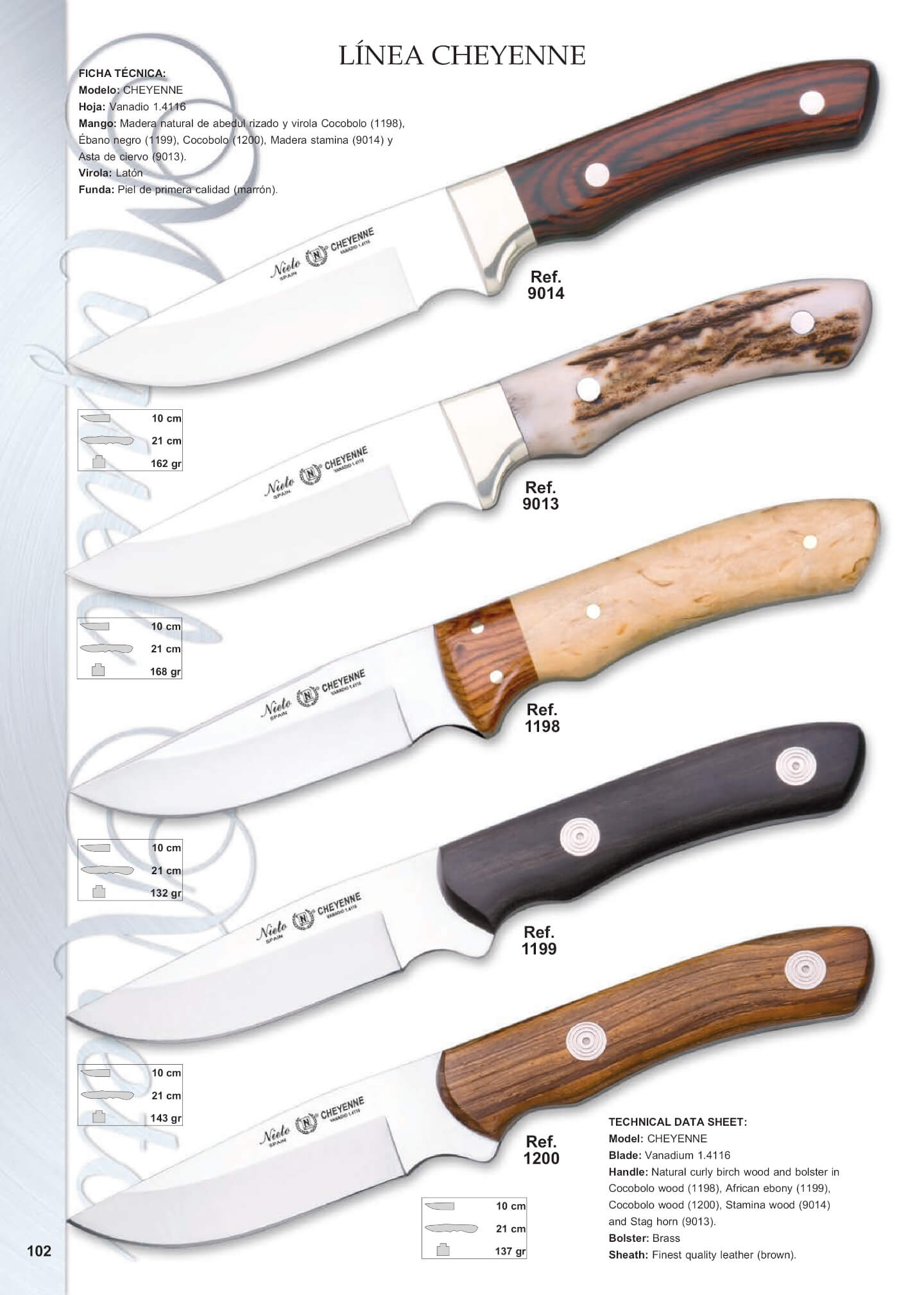 Manico: legno naturale di betulla riccia e ghiera di cocobolo. Lunghezza del foglio: 11 cm. Lunghezza totale: 20 cm. Peso: 165 gr.