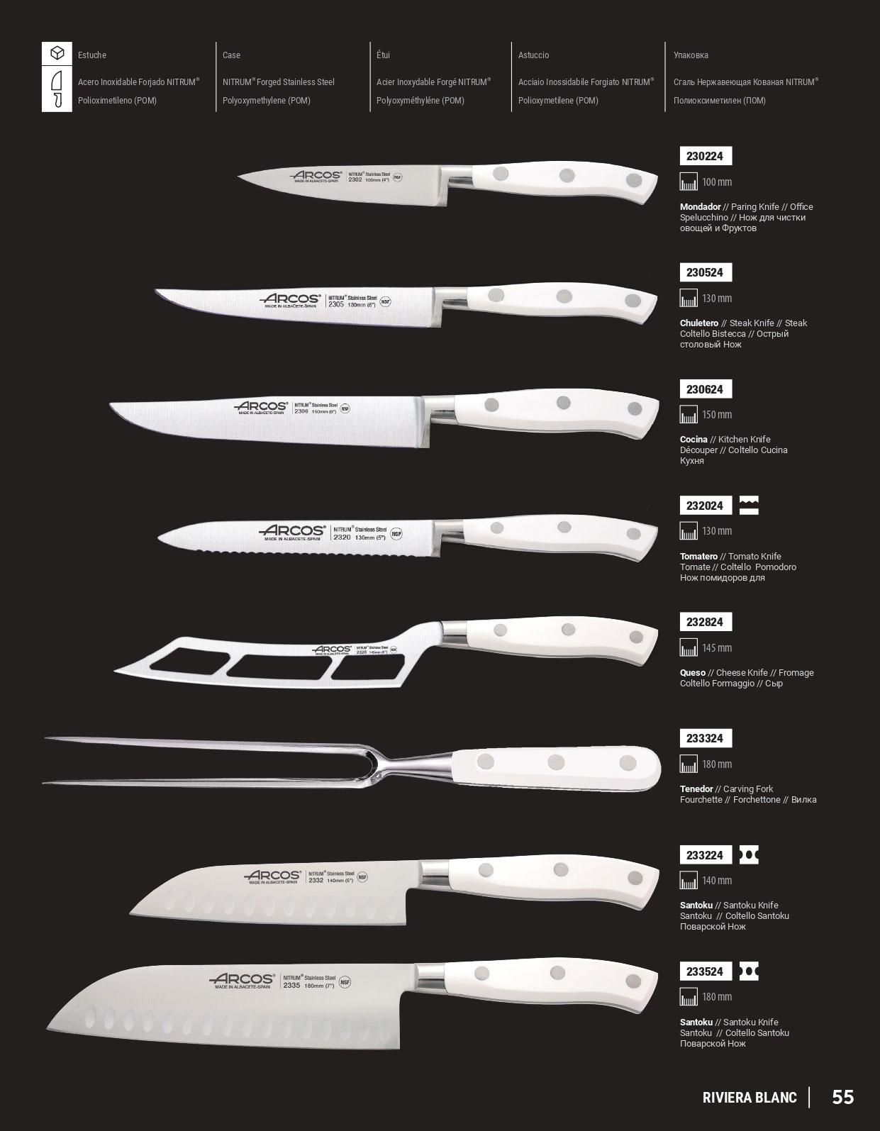 Chef coltelli Riviera biancoColtelli da cuoco con lama in acciaio NITRUM e manico in POM bianco