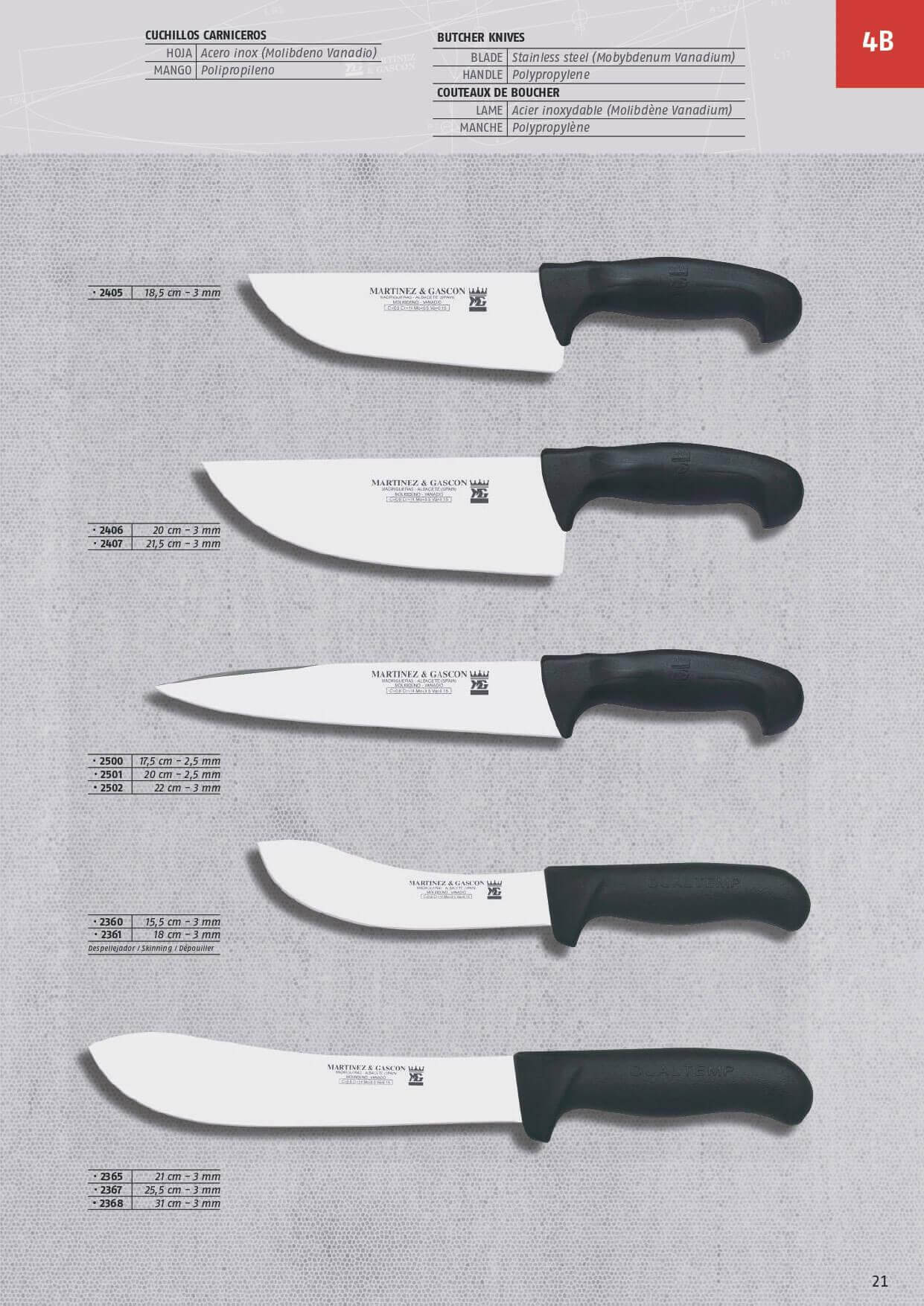 Coltelli da macellaio con lama in acciaio inox e manico in polipropilene.