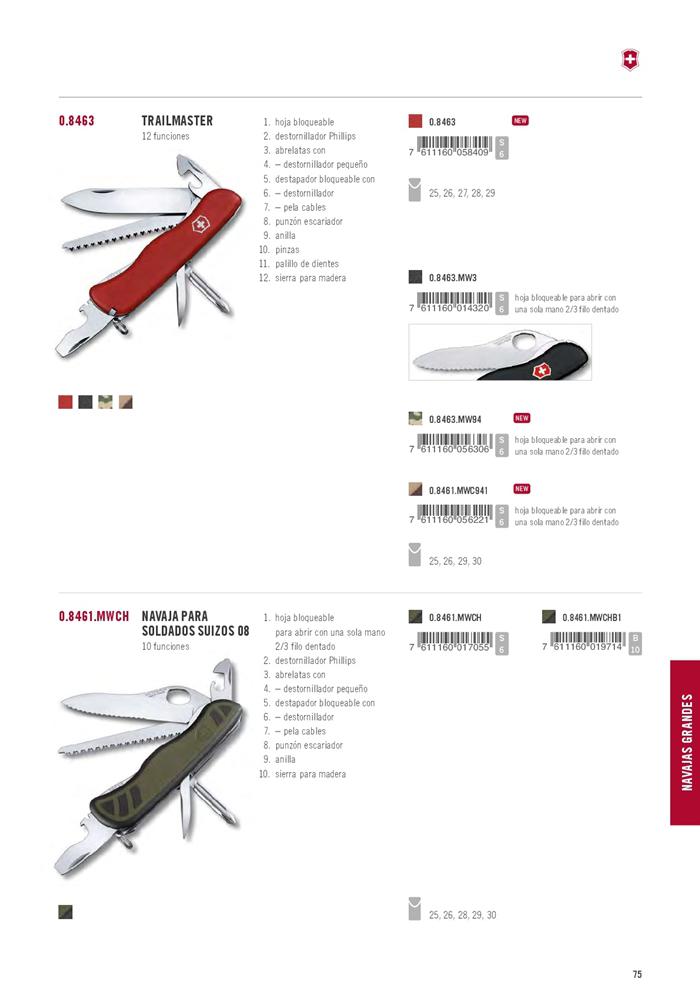 Lâmina travável, chave de fenda 1/2 Phillips, abridor de latas com chave de fenda de 3mm, abridor de garrafa travável com chave de fenda 7mm e removedor de fios, perfurador alargador, anel, pinça, palito, serra de madeira. Peso 130 gr. Comprimento 111 mm, altura 18 mm.