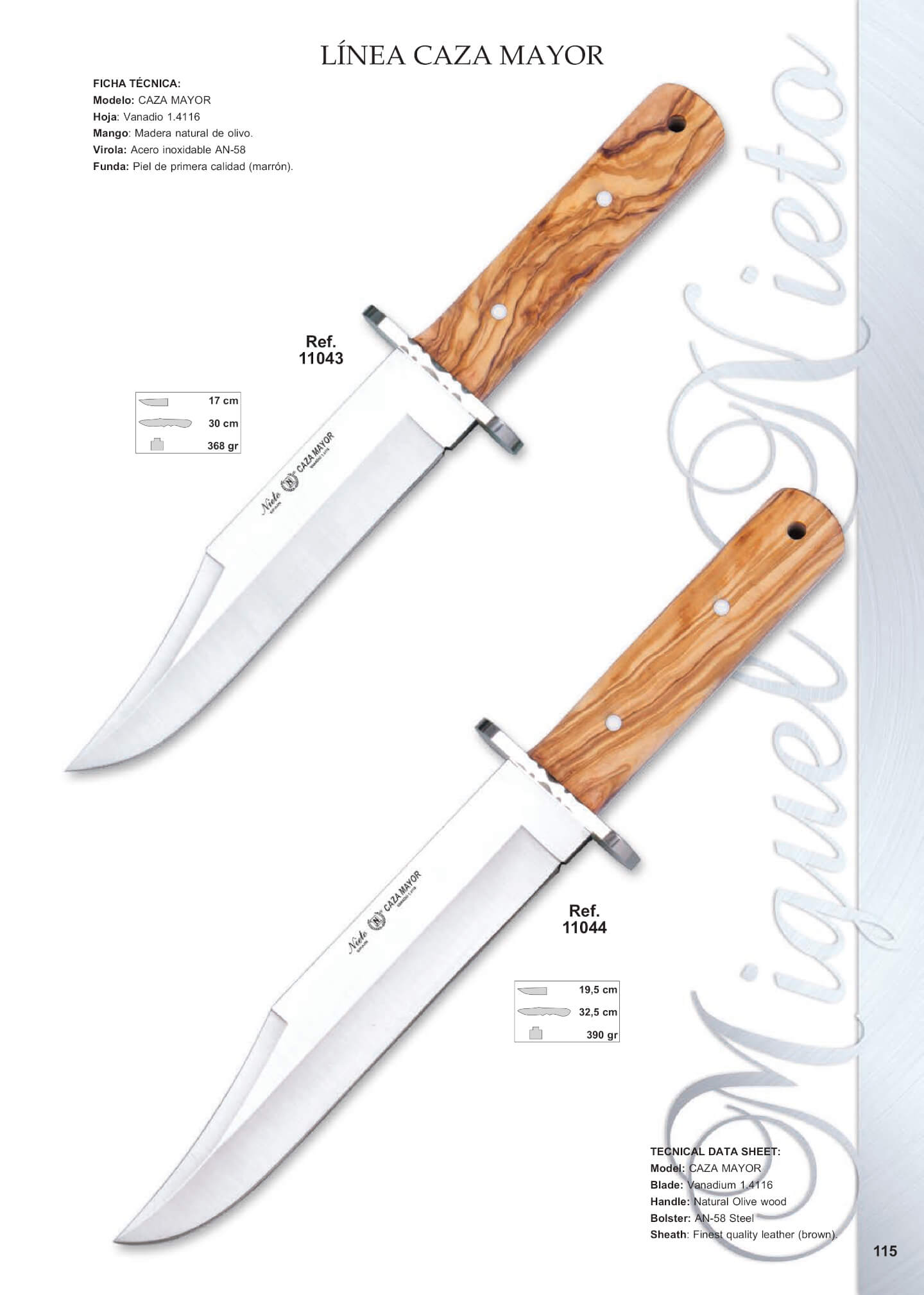 Comprimento da folha: 19,5 cm. Comprimento total: 32,5 cm. Peso: 390 grs.