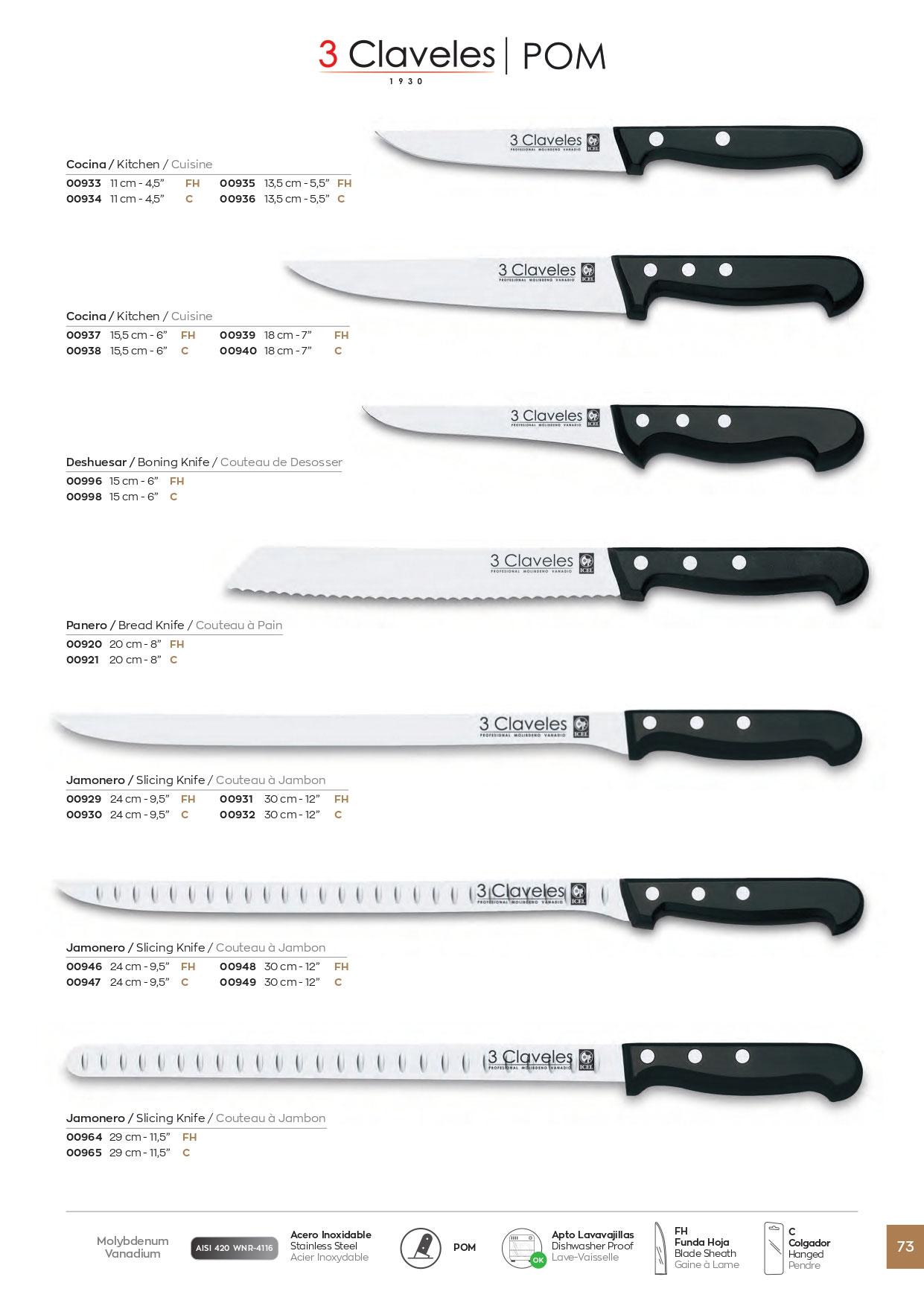 Facas de cozinha. Lâmina de aço inoxidável. POM segurar. Desossa faca, cozinha, pão e presunto.