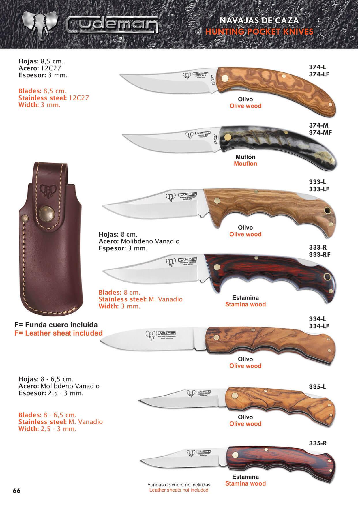 Facas de caça com lâmina de aço 12C27 ou Molibdênio Vanádio .