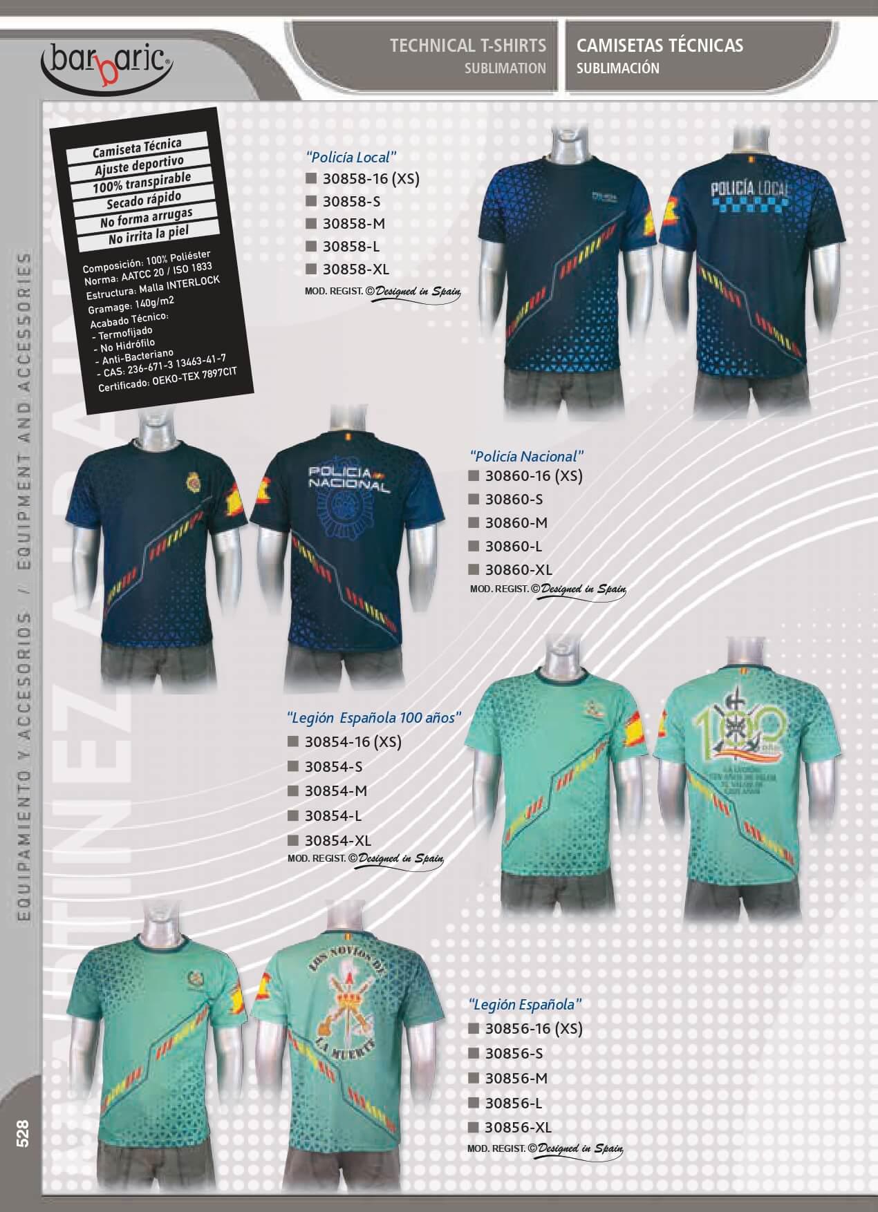 Camisas técnicas de sublimação com diversos motivos. Camiseta da Policia Local. Camiseta da Policia Nacional.Camiseta da Legião Espanhola 100 anos. Camiseta da Legião Espanhola. Composição: 100% poliéster.