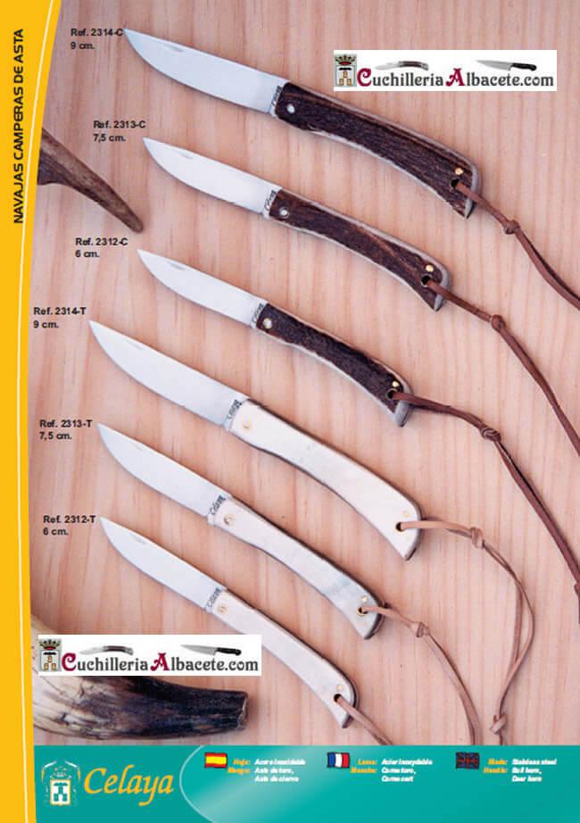 Canivetes "camperas" com lâmina em aço inoxidável. Cabo de chifre de veado ou chifre de touro.