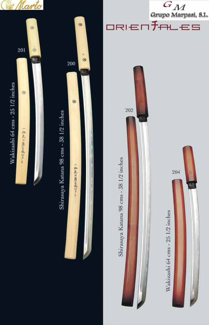 Espadas Oriental200 Shirasaya Katana. 201 Wakizashi. 202 Shirasaya Katana. 204 Wakizashi.