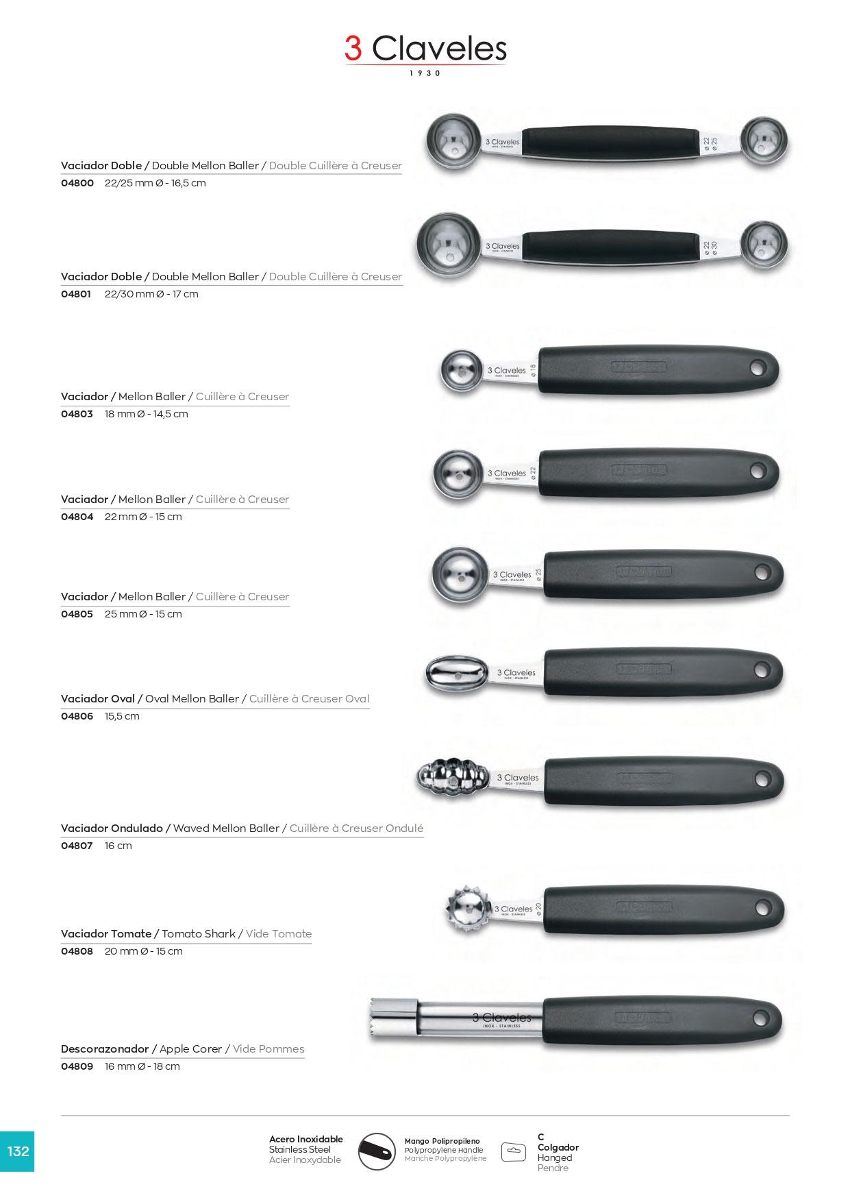 Descaroçador oval de 15,5 cm, cabo em polipropileno preto, 3 Clav...