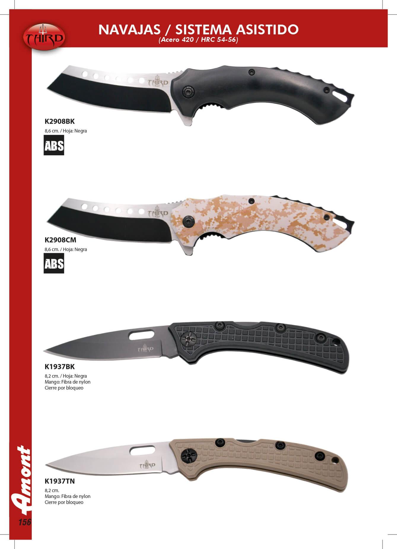 Facas táticas. Lâmina: aço 420 / HRC 54-56. Com sistema assistido.