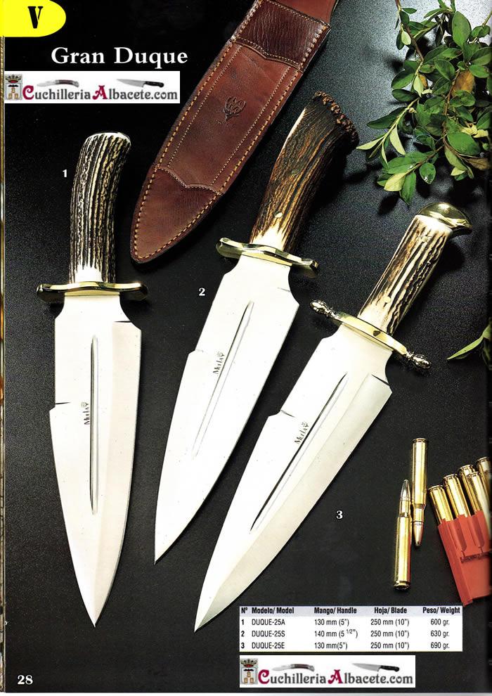 É uma faca de caça com lâmina tipo adaga de aço Molibdênio Vanádio com fio duplo e comprimento de 25 cm.