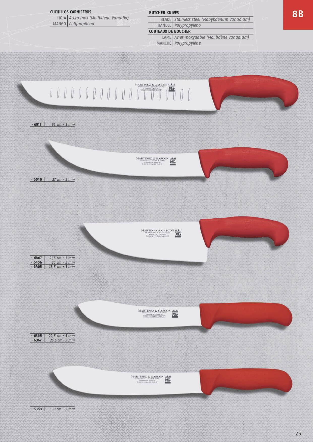 Butcher facas com lâmina de aço inoxidável e polipropileno.