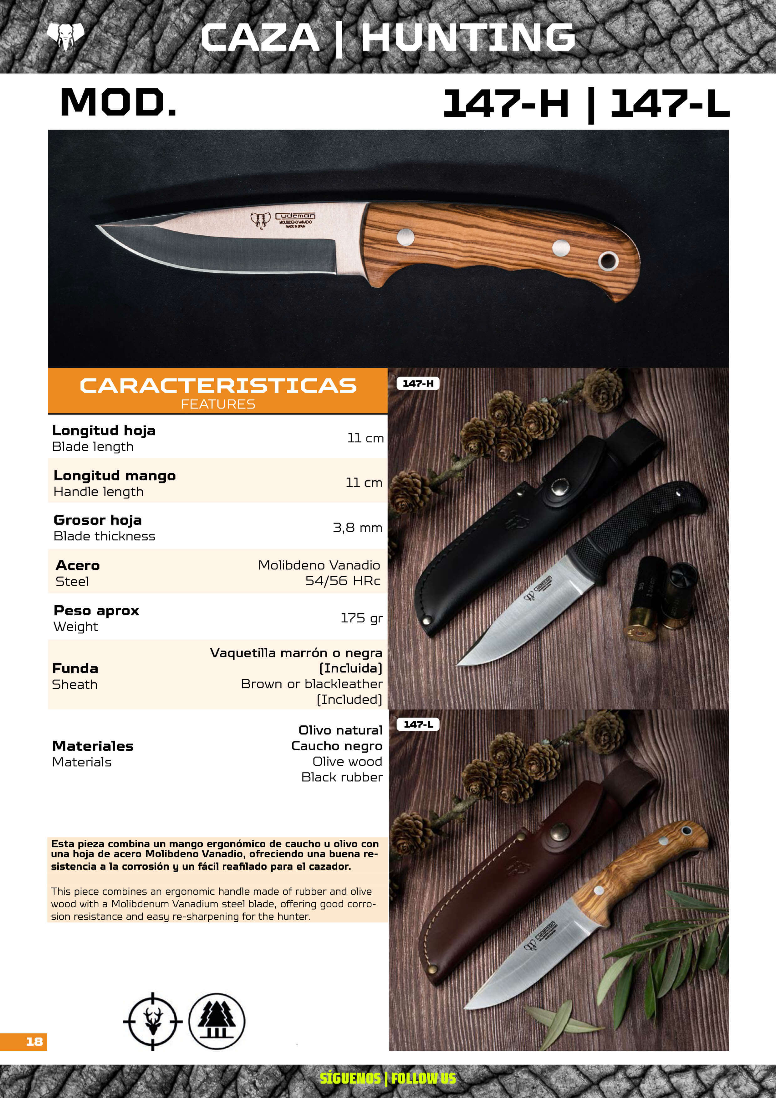 147-L cabos em madeira de oliveira. Peso da faca: 156 gr.
