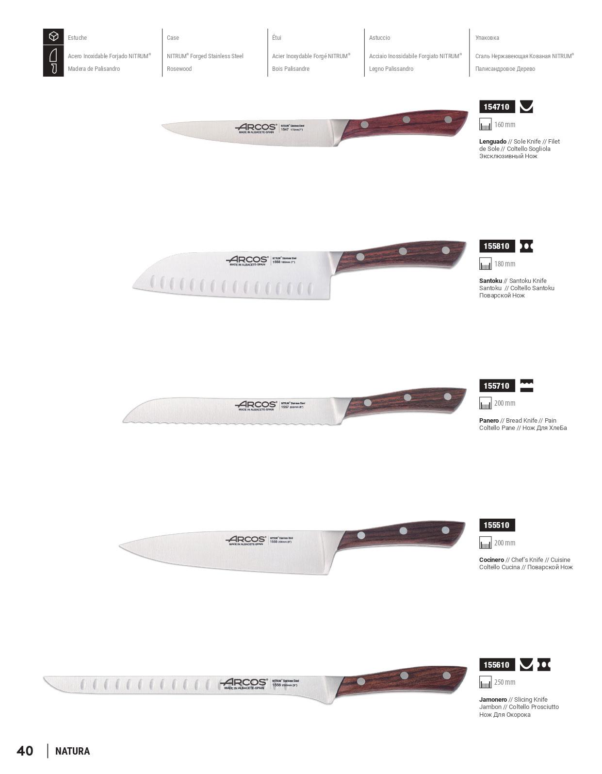 Facas de cozinha. Chapa de aço NITRUM inoxiable. Mango de palisandro.