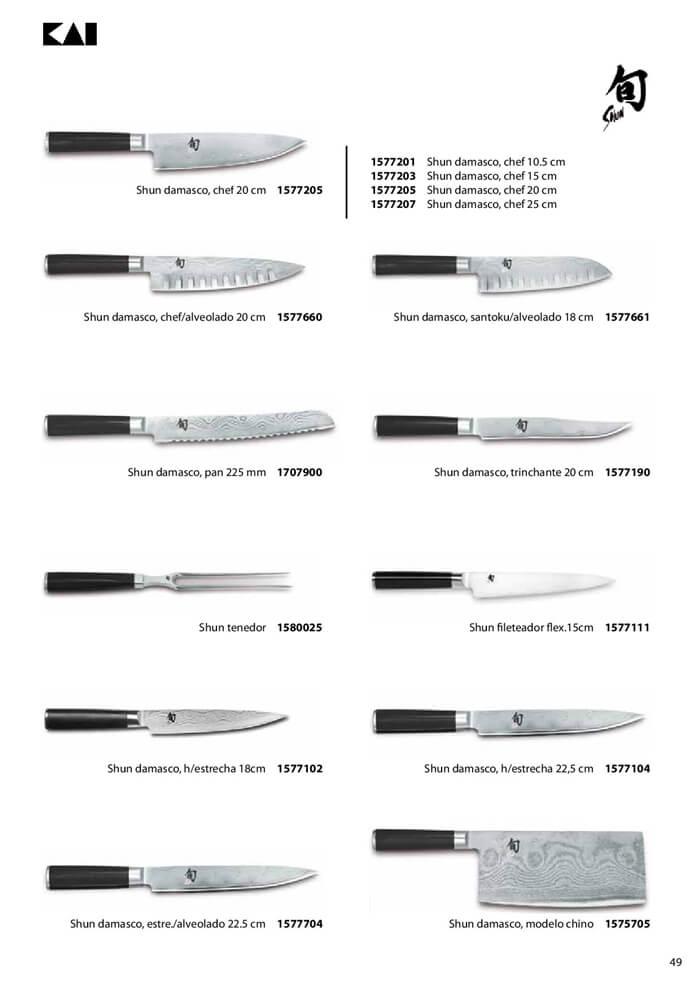 KAI - SHUN DAMASCO. Facas chef profissional Shun são feitas de aço inoxidável específico damasco com 32 camadas. A camada de núcleo é feita de aço VG10. Este é um extremamente duro (61 ± 1 HRC, 1,0% de carbono, 1,5% de cobalto)