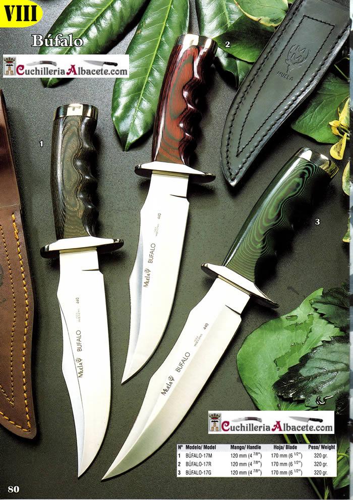 Faca de caça Muela Bufalo com cabo em madeira preta e prata níque...