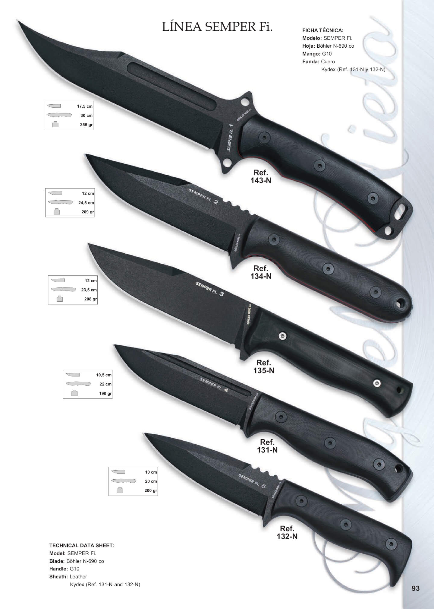 Faca militar Nieto Semper Fi. Com lâmina de aço Böhler N690Co preta e cabo G10 preto.