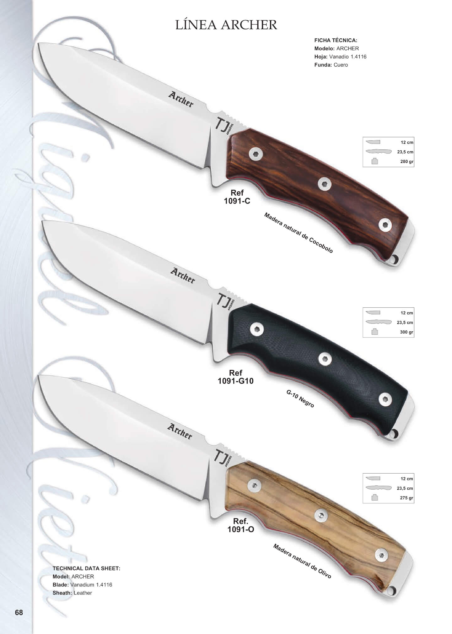 Bushcraft e facas de sobrevivência da linha Archer. Com lâmina de aço MoVa 1.4116 de 12 cm de comprimento e 24 cm de comprimento total