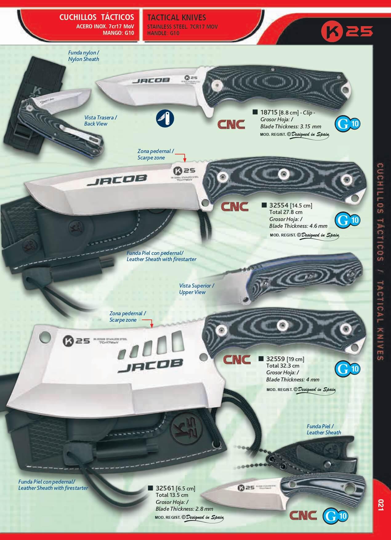 32559: Faca JACOB K25, com lâmina de 19,00 cm e cabo G10