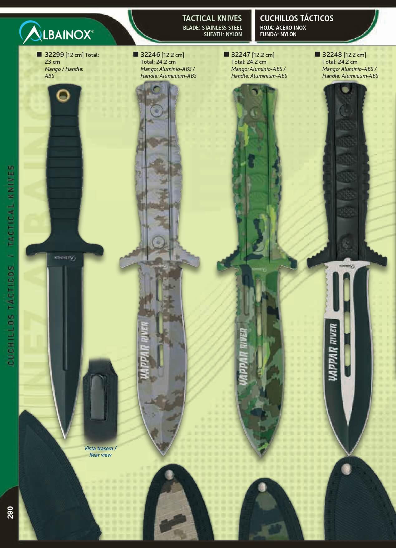Faca tática de dois gumes preta Albainox com bainha de nylon e lâ...