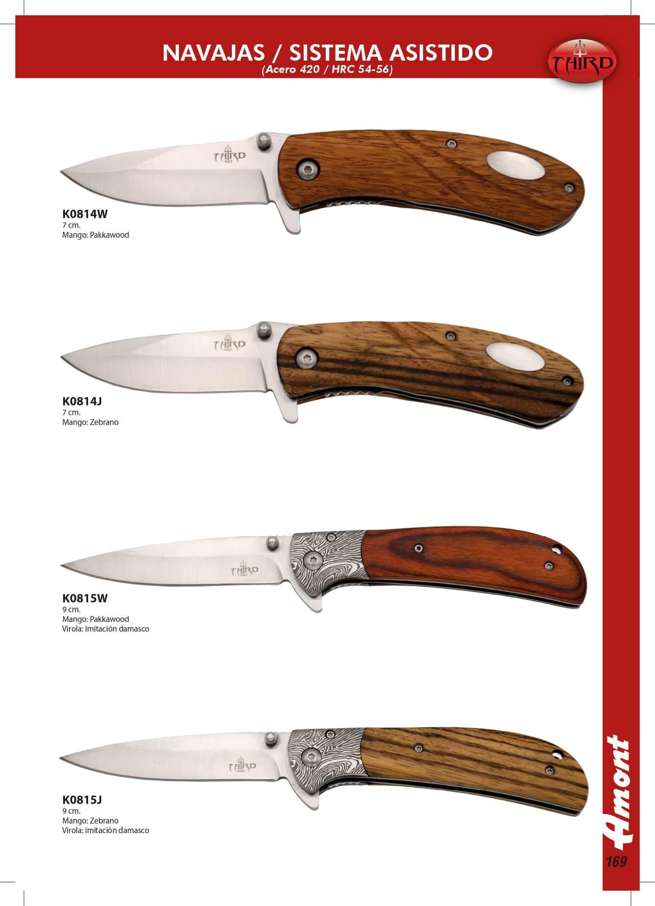 Facas com sistema de abertura assistida. Folha de aço 420.