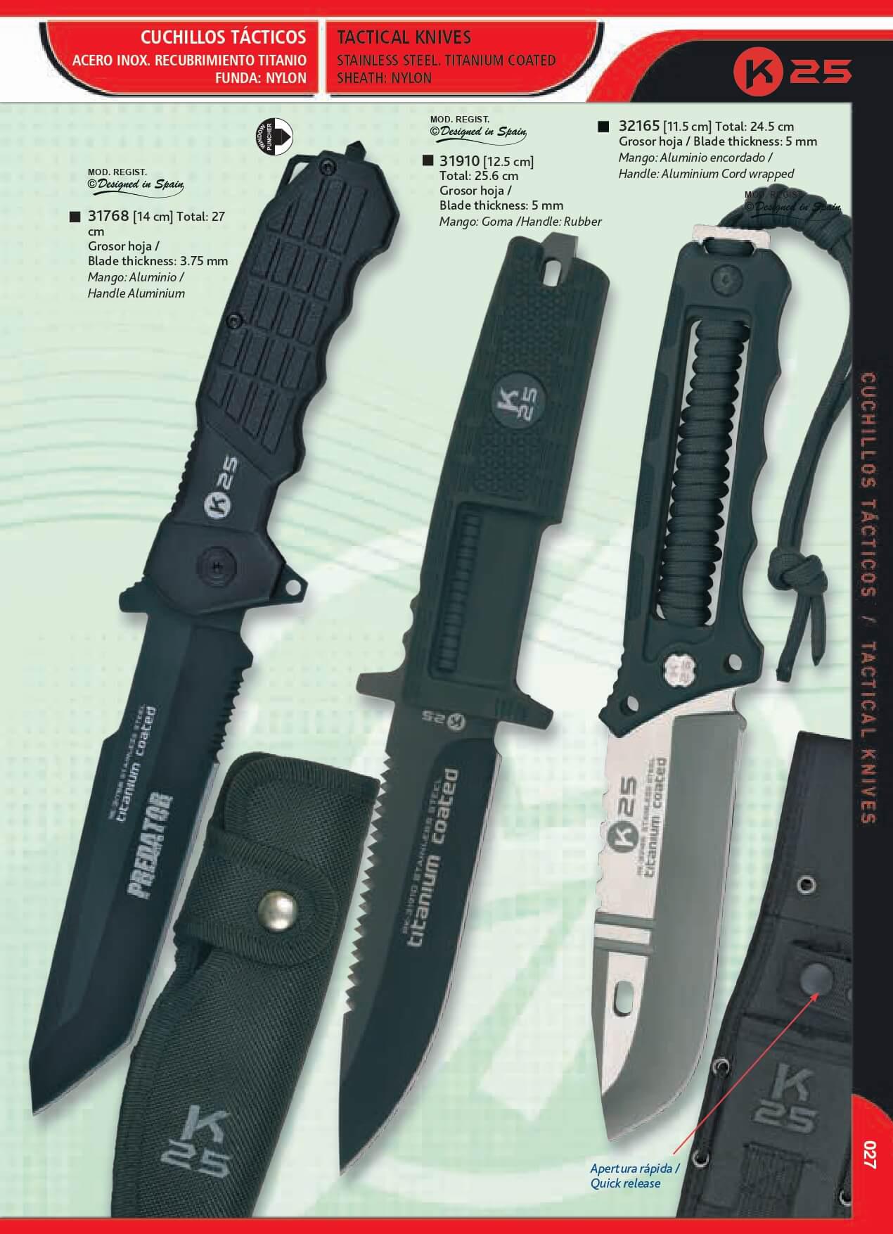 Faca K25 com cabo de borracha e lâmina de titânio revestida de 12...