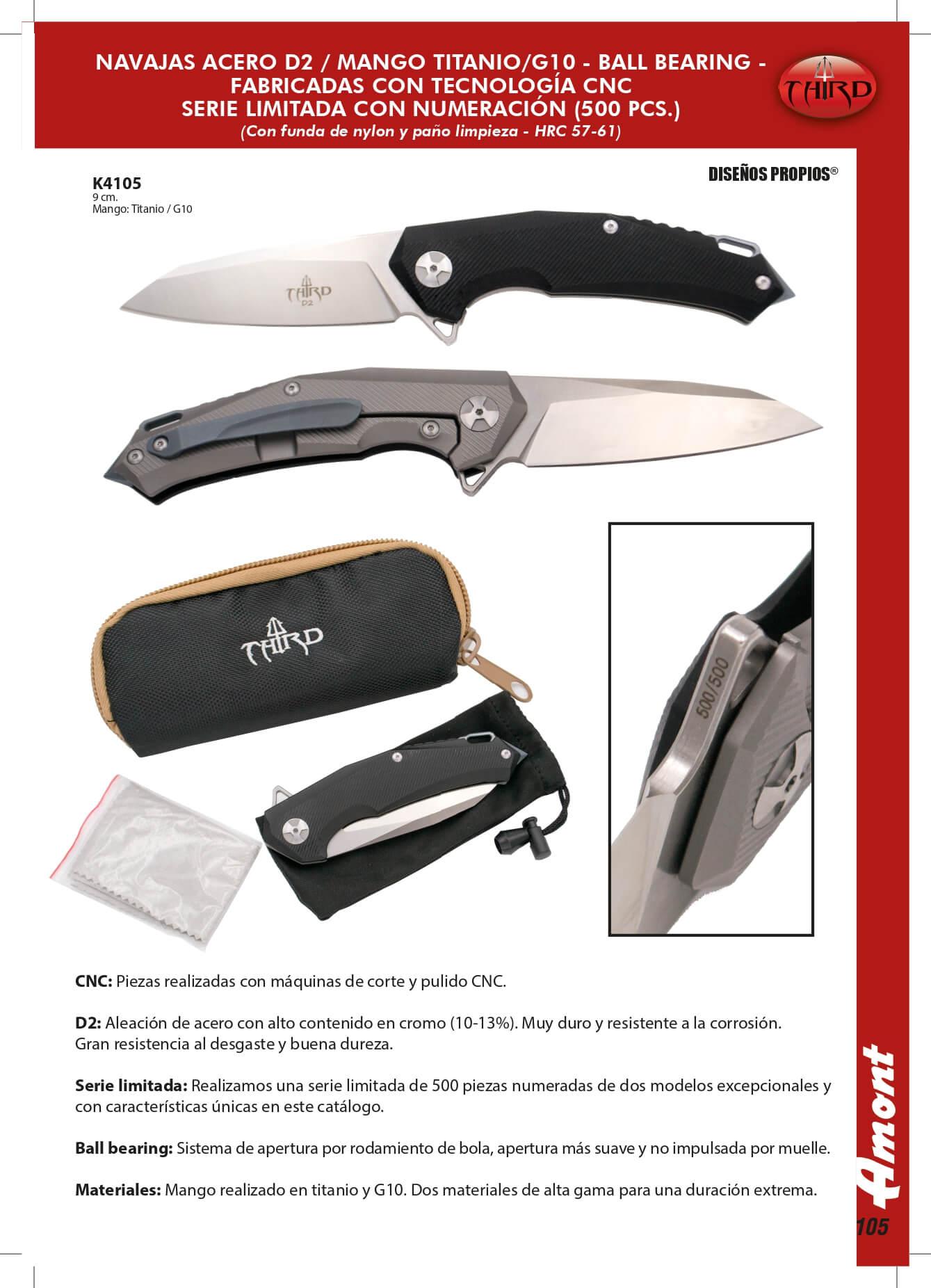 Canivetes série limitada 500 unidades. Chapa de aço D2 (HRC 57-61). Cabo em titânio / G10 feito à mão com tecnologia CNC. Sistema de abertura de rolamentos de esferas. Com capa de nylon e pano de limpeza.