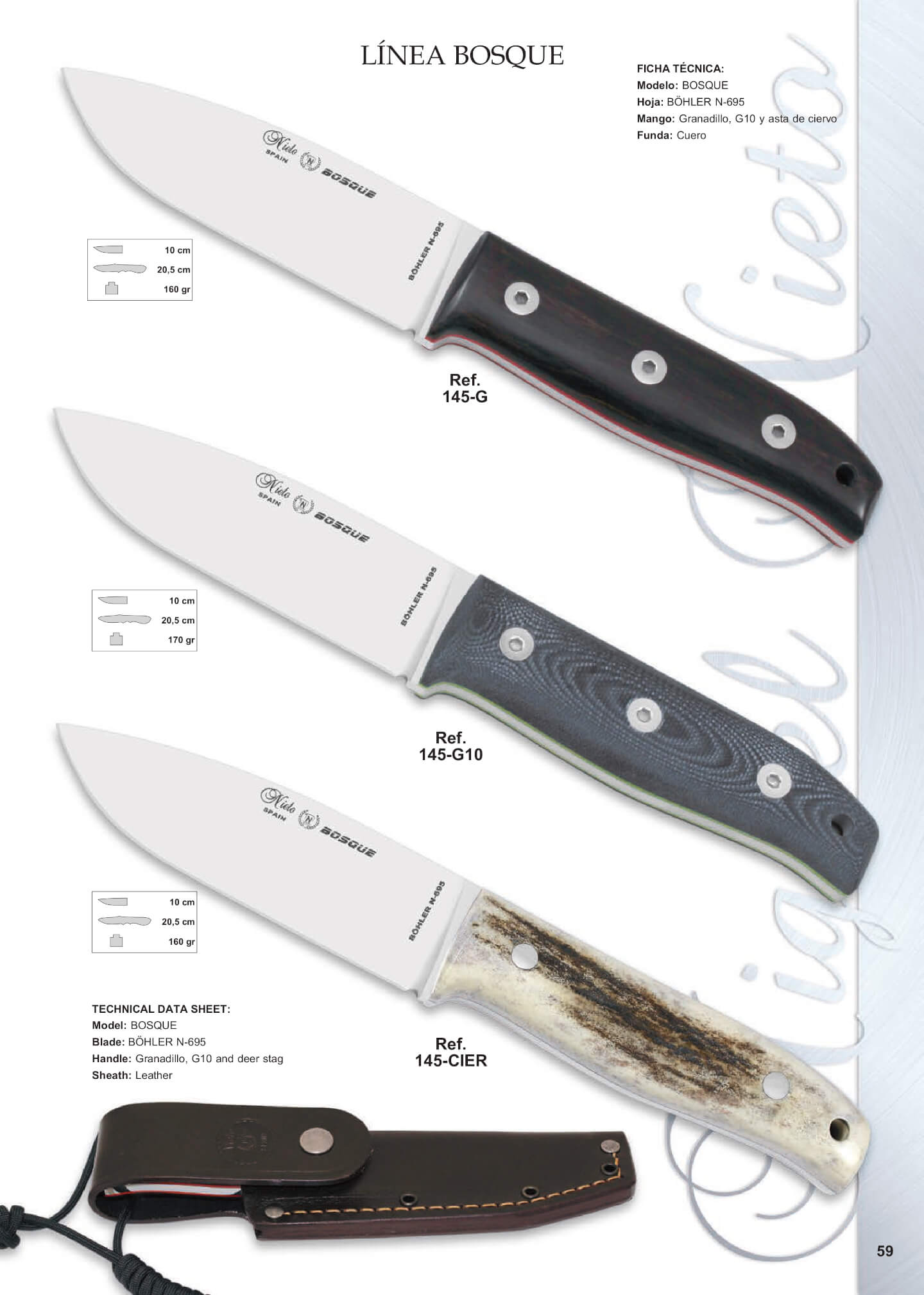 Lâmina: aço Böhler N695. Estojo de couro incluído.